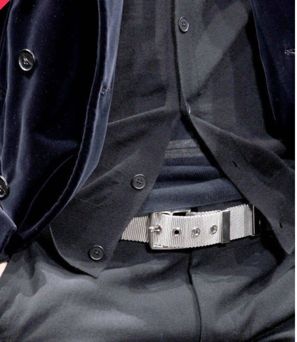 タックインした時に覗くメタルメッシュの光沢は唯一無二で、コーディネートを格上げする存在感を放ちます。