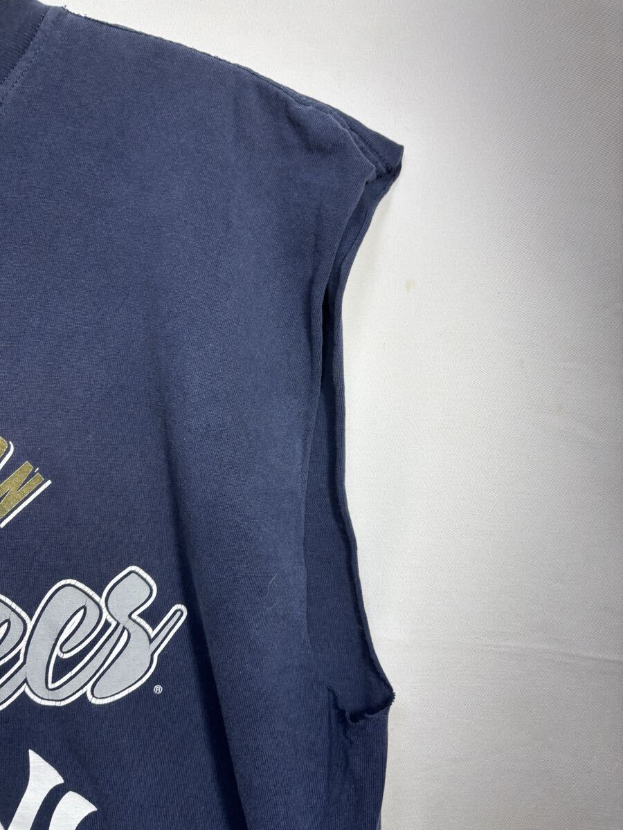 ■ 90s 90年代 ビンテージ MLB YANKEES ヤンキース ロゴ プリント カットオフ タンクトップ ネイビー サイズXL 野球 アメカジ ■