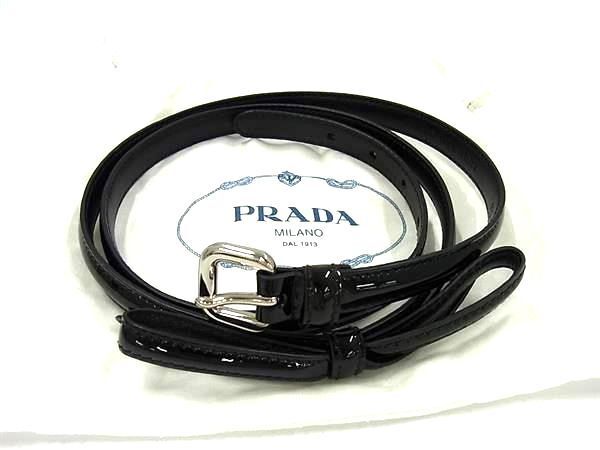 ■新品同様■ PRADA プラダ パテントレザー リボン ベルト 表記サイズ 85/34 レディース ブラック系 FL9539