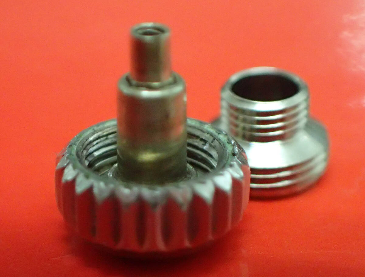 中古リューズの約7割はねじ込みが0.5から1.0回転未満で交換しても長くは使えません。当店では約1.5回転(時計回り)以上のリューズのみを選別し販売しております。回転数は新品のチューブで計測しており、損耗したチューブの場合は回転数が減りますのでチューブセットのご購入をお勧め致します。