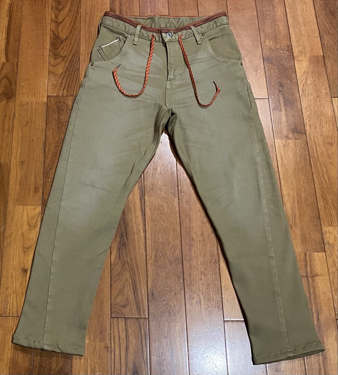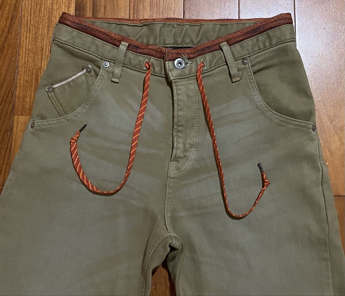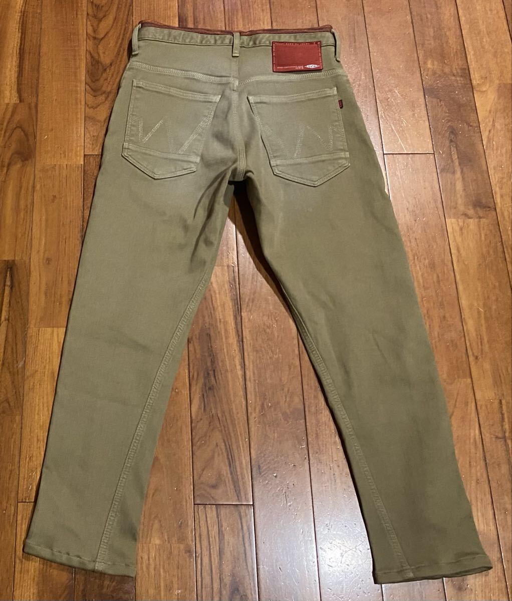 エドウィンのジャージーズ暖テーパードデニムパンツ、ER107Wです。色はカーキです。USEDで裾直ししておりますが状態は良いです(10段階中8程度)。生地はストレッチ入りで綿78%、ポリエステル9%、レーヨン7%、アクリル4%、ポリウレタン2%、ウエストリブはポリエステル95%、ポリウレタン5%です。ジッパーフライです。正規品です((株)エドウイン、日本製)。サイズはSでウエストは重ねずに平置きで約76cm、ヒップ約98cm、股上約30cm、股下約68cm、股下15cmのふともも部分約51cm、裾まわり約33cm、重量約670gです。発送はゆうパケットポストになります。
