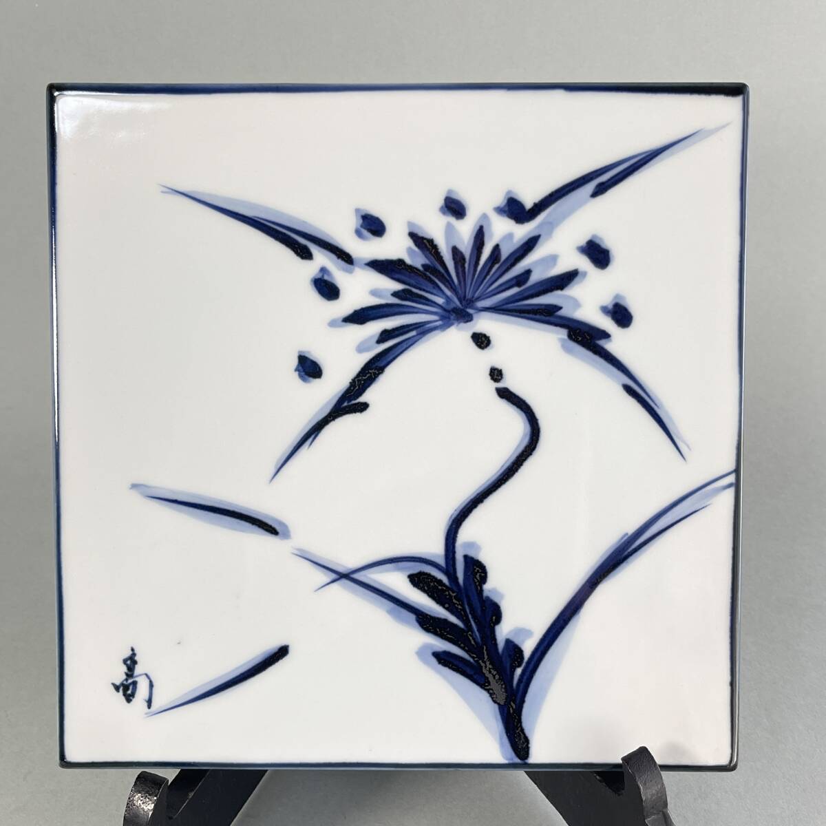 近藤高弘 造 染付陶板 茶道具 近藤悠三 陶板画 タイル C10