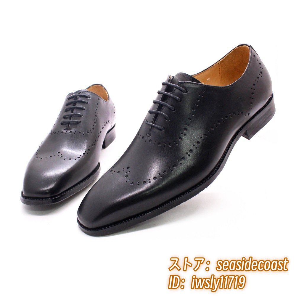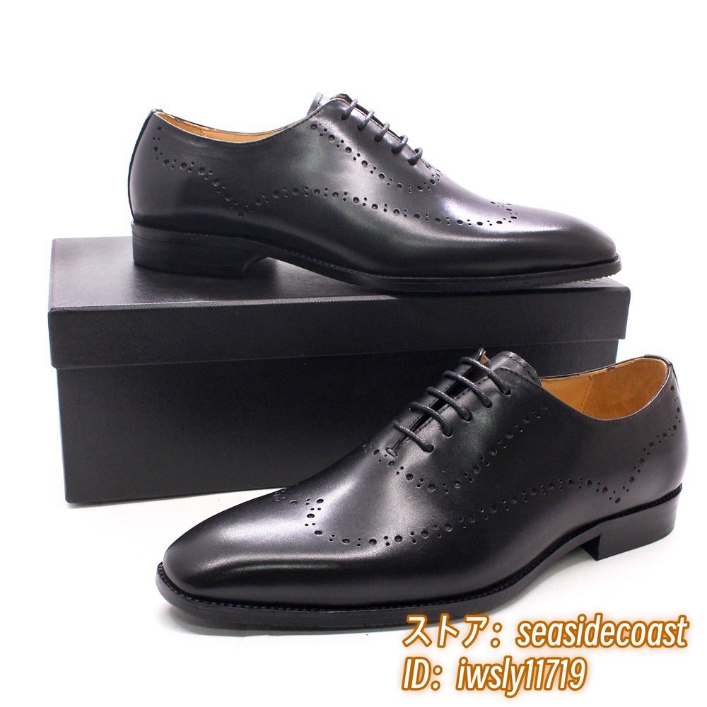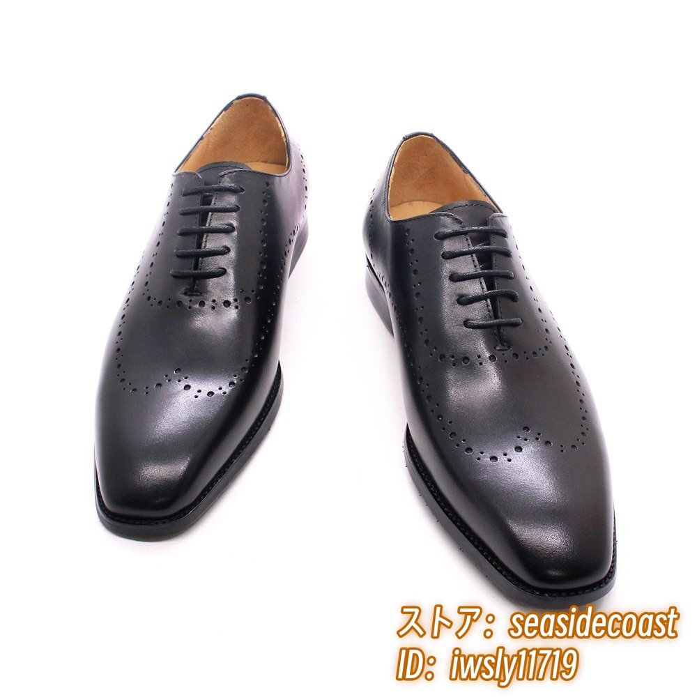 定価11万超■超希少 メンズ ビジネスシューズ 本革 レザーシューズ 職人手塗仕上げ 最高級 牛革 紳士靴 フォーマル 革靴 ブラック 26.5cm