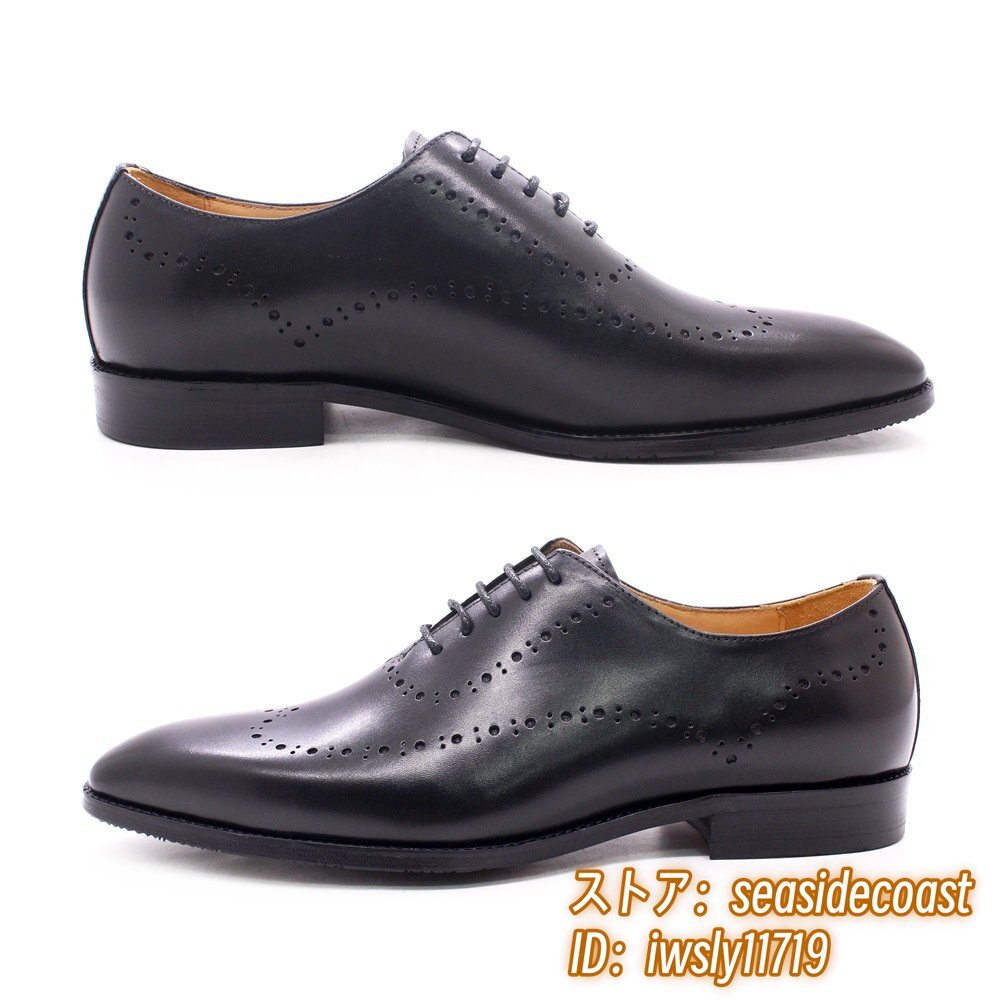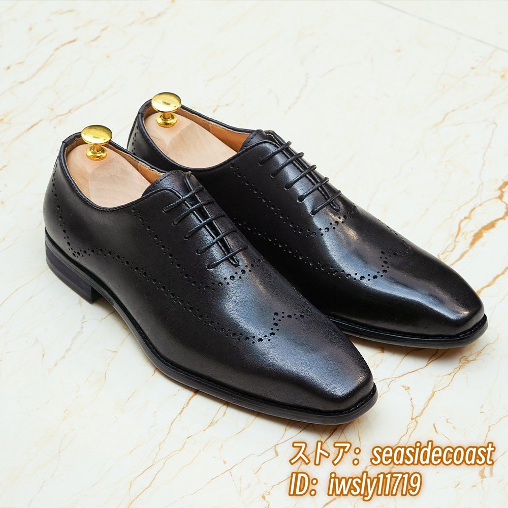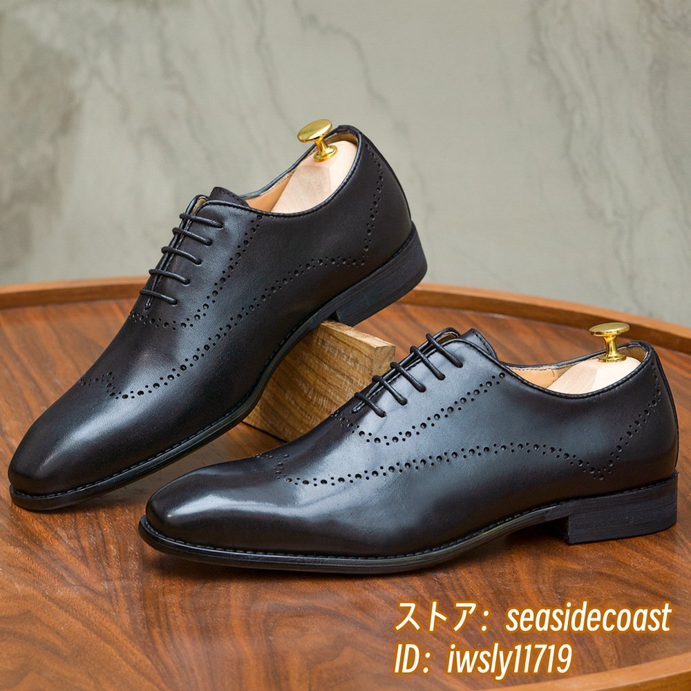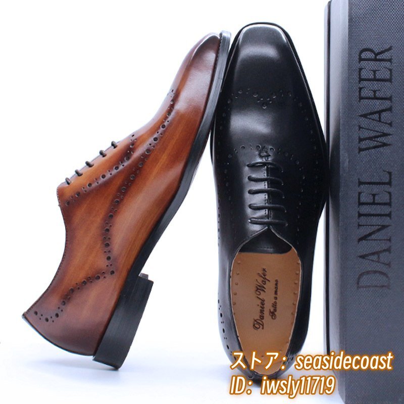 定価11万超■超希少 メンズ ビジネスシューズ 本革 レザーシューズ 職人手塗仕上げ 最高級 牛革 紳士靴 フォーマル 革靴 ブラック 26.5cm