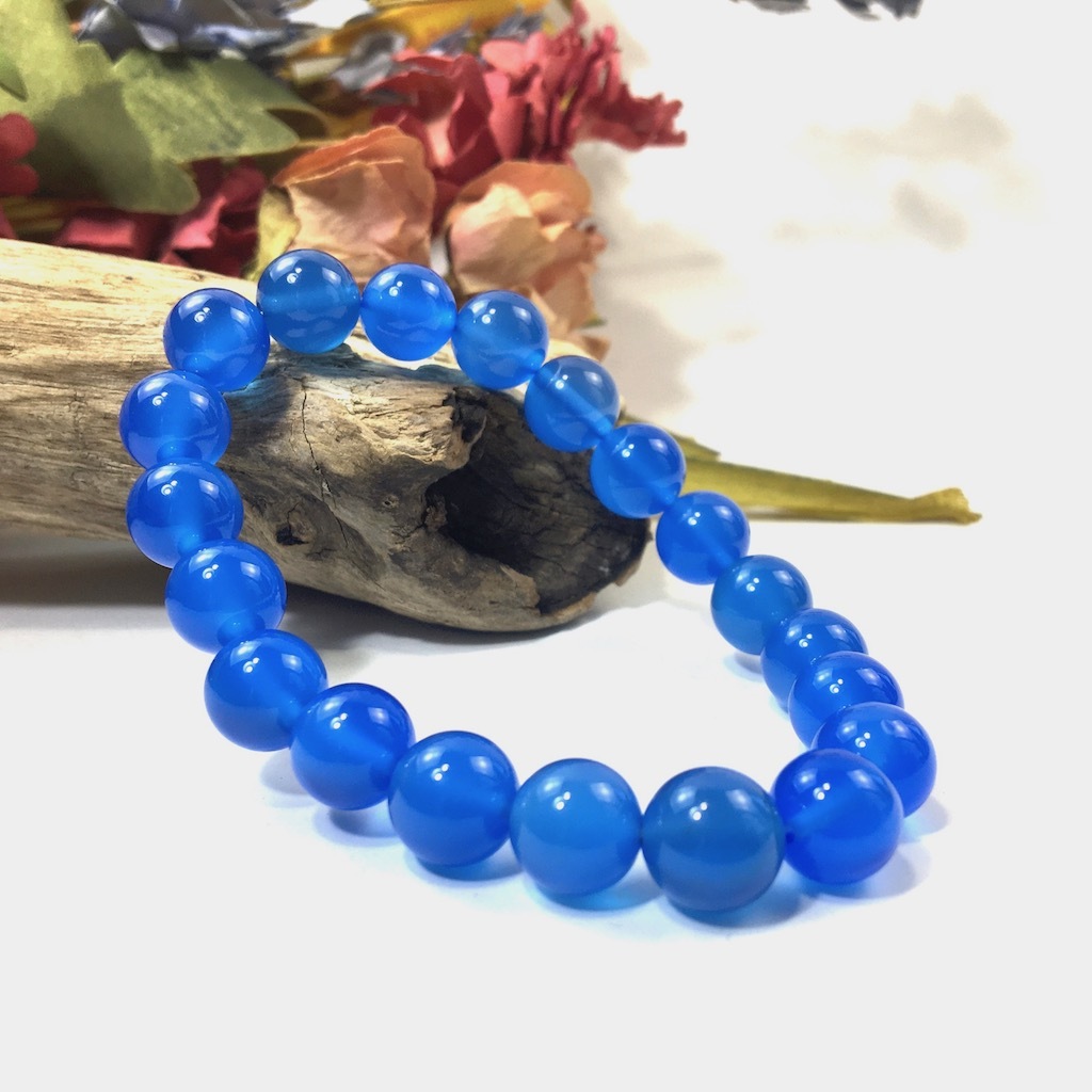 こちらは、青瑪瑙の10mm玉を使用したパワーストーンブレスレットです。シンプルなデザインですのでどんなコーディネートとも合わせ易いブレスレットです。サイズは内径約17cmです。(サイズ変更の場合は取引ナビにてご連絡をお願いします。) 数に限りがございますので気になる方はお早めにどうぞ。