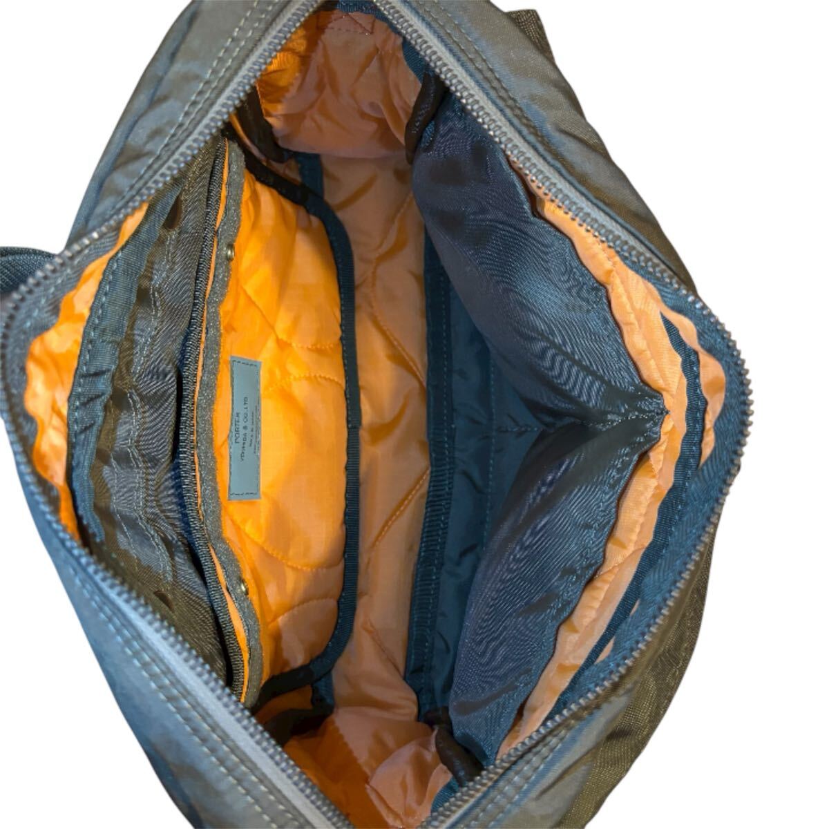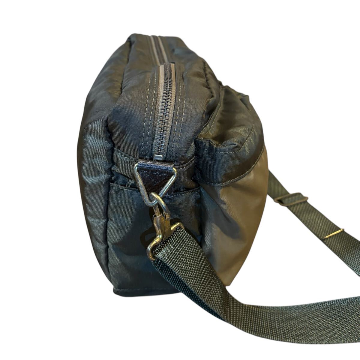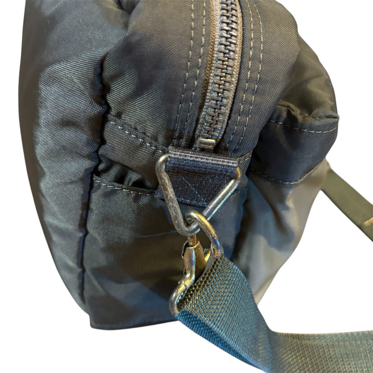 全体的にスレなく、マーク部分は綺麗な状況です。肩掛け紐の付け根の金具が少し錆びています。詳しくは写真を参照ください。