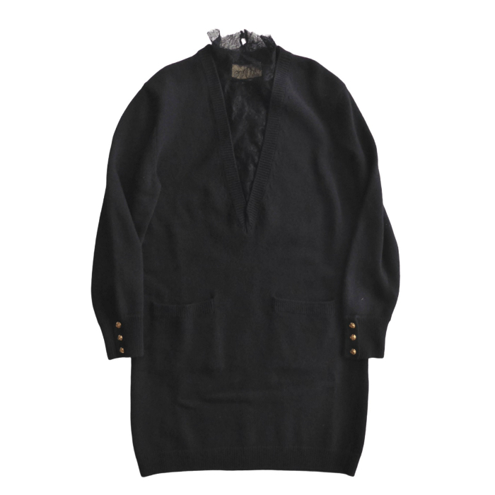 グッチのニットワンピース。 深めのVネックにレース生地を合わせたデザイン。 華やかなレースや袖の金ボタンがエレガントな仕上がりです。 ニットの重厚感とレースの軽やかさの組み合わせのバランスが他にない逸品です。 程よいデザイン性が様々なスタイルに落とし込みやすく秋冬のスタイリングをよりお楽しみいただけます。 |