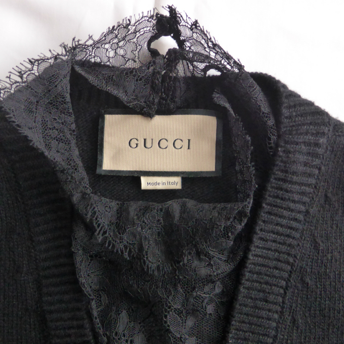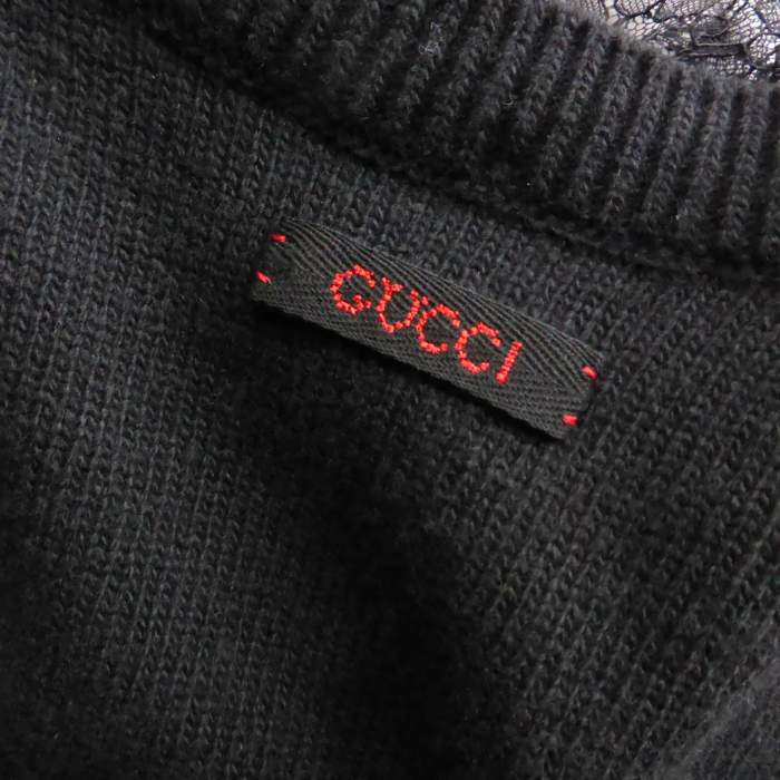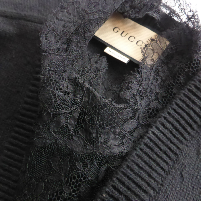 グッチ(GUCCI) ウール ニット ワンピース Vネック レース トップス S 717540 ブラック ウェア(中古) |