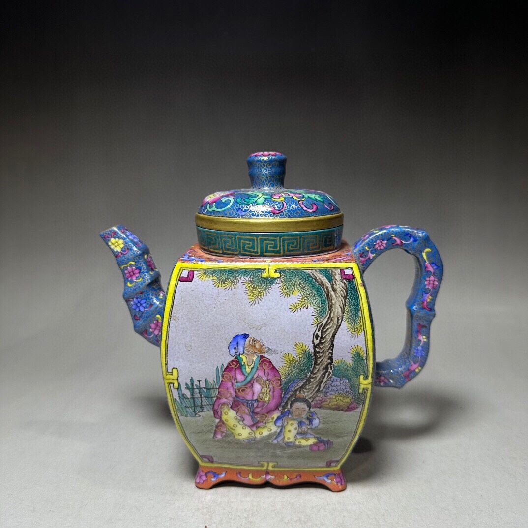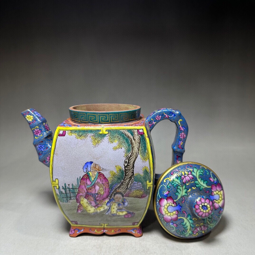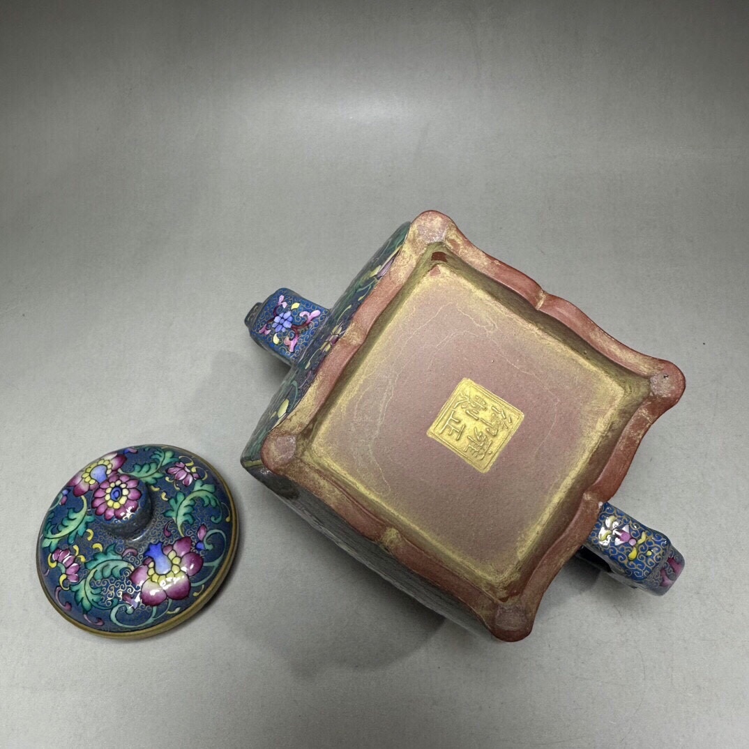 【超珍館蔵 琺瑯彩 塗金 紫砂壺 高四方雍正御製款 紫砂 茶具 茶道品 置物 賞物 古賞物 古董品 古美術品 時代物 旧家蔵出 稀少珍蔵品