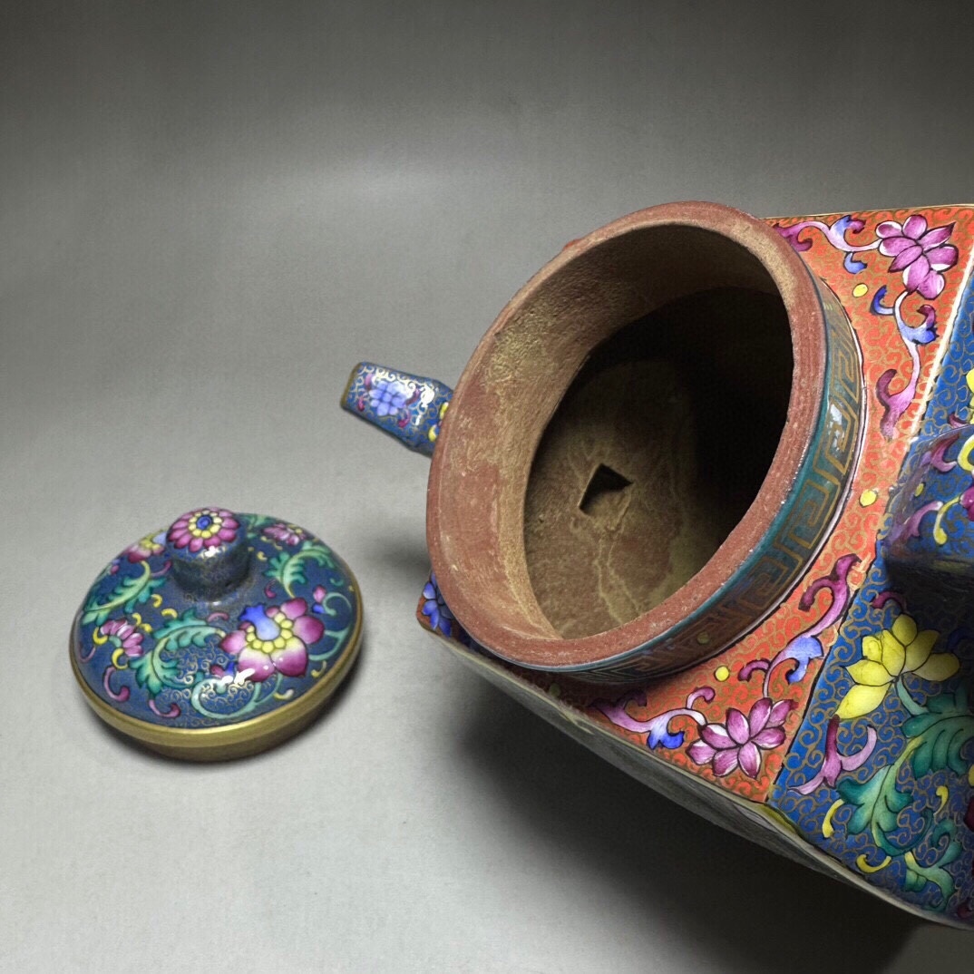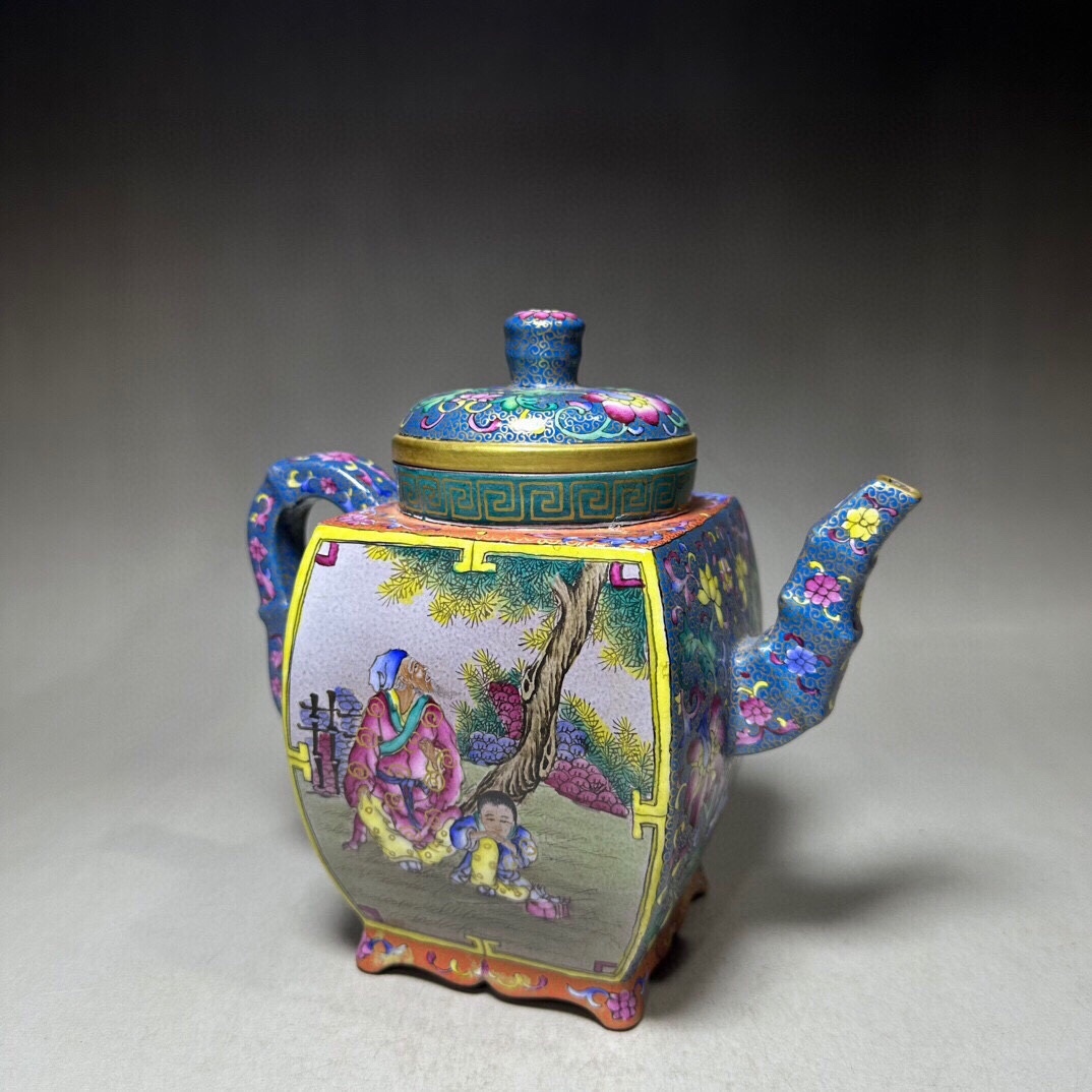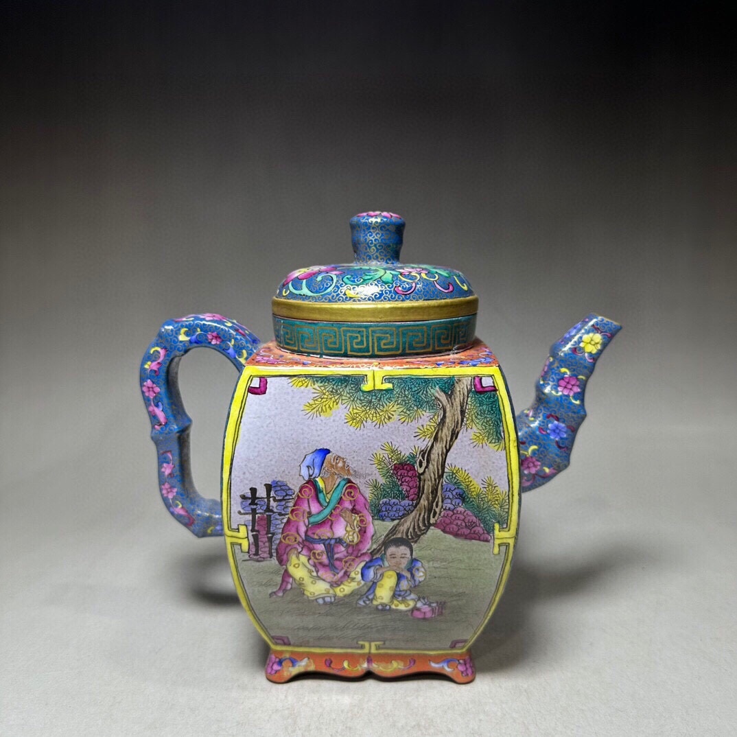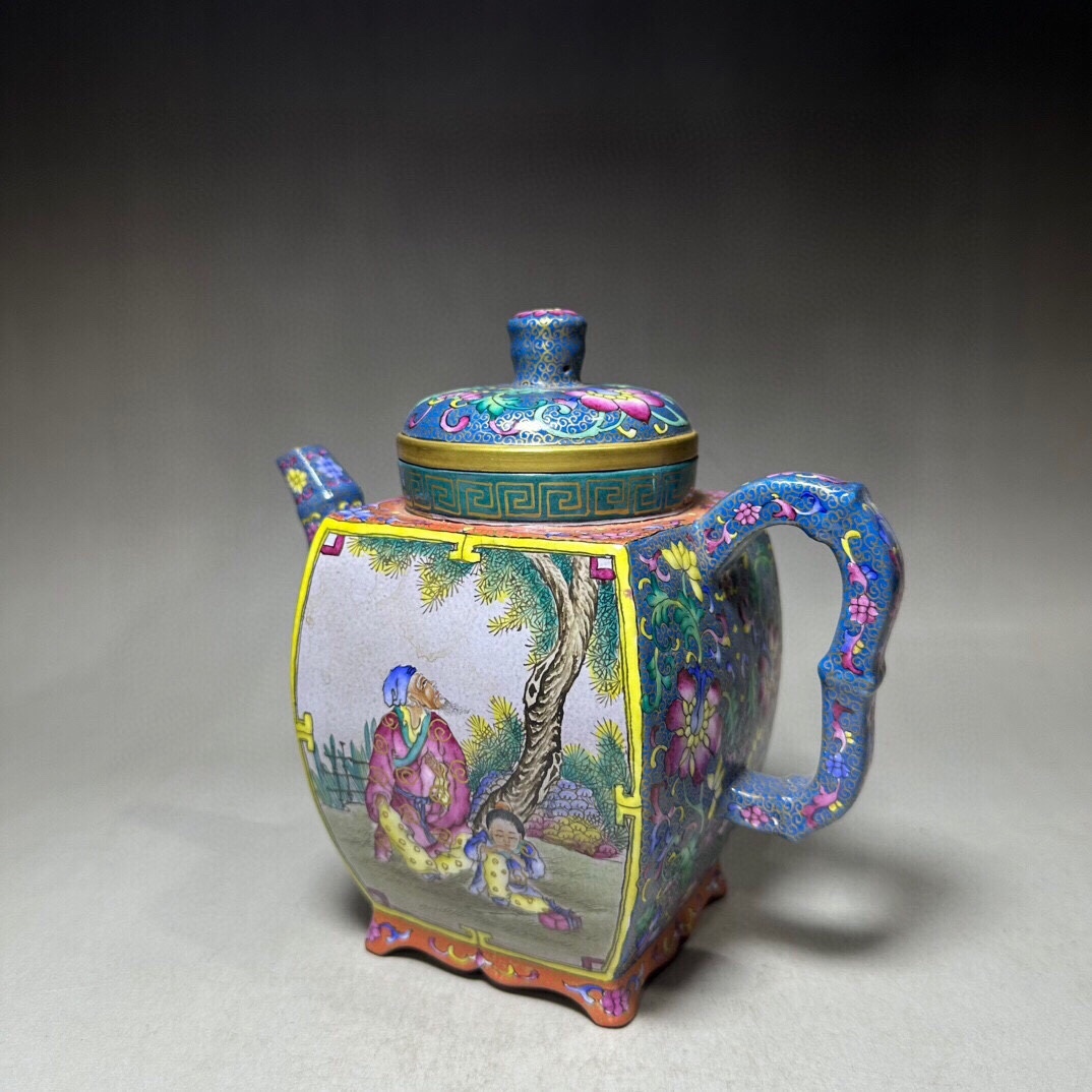 【超珍館蔵 琺瑯彩 塗金 紫砂壺 高四方雍正御製款 紫砂 茶具 茶道品 置物 賞物 古賞物 古董品 古美術品 時代物 旧家蔵出 稀少珍蔵品
