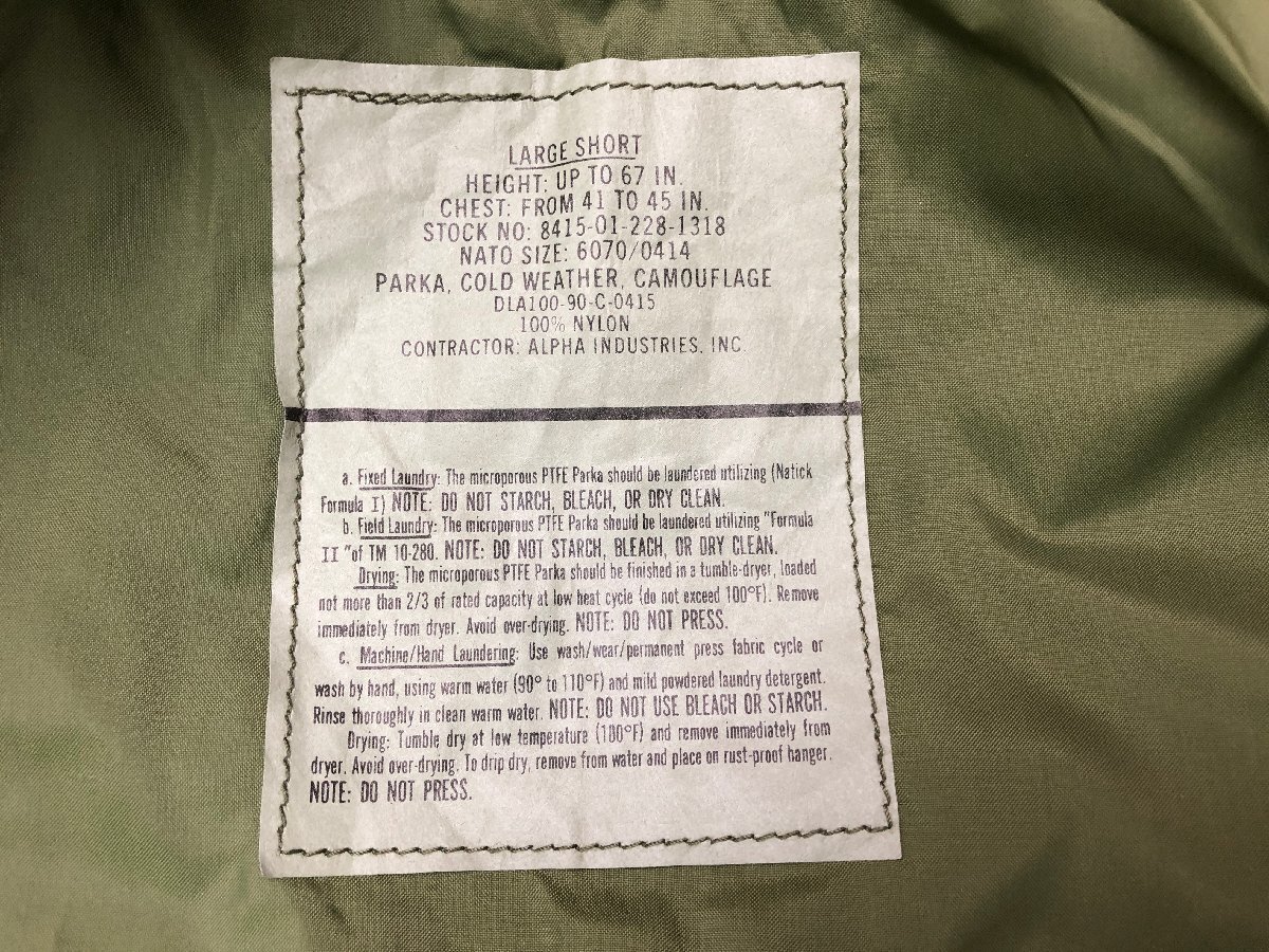 US ARMY 米軍 ECWCS COLD WEATHER PARKA CAMOUFLAGE 8415 01 228 1318