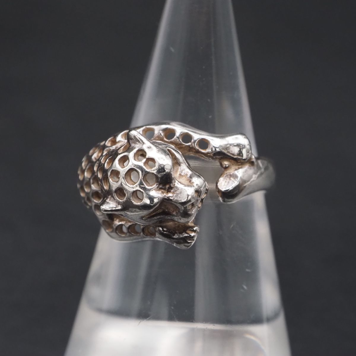 F766 ヴィンテージ 925 MEX刻印 リング ヒョウ 豹 ジャガー デザイン シルバー 指輪 13号