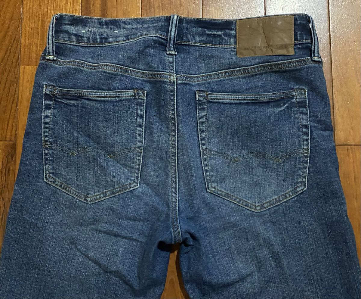 アメリカンイーグルのストレッチスキニーデニム(ジーンズ)、NE(X)T LEVEL AIRFLEX SUPER SKINNYです。色はインディゴブルーです。USEDですが状態は良いです(10段階中8程度)。紙パッチ、ジッパーフライ、裾はチェーンステッチです。生地はストレッチ入りでコットン99%、ポリウレタン1%です。正規品です((株)イーグルリテイリング、ベトナム製)。サイズはW28×L28でウエストは重ねずに平置きで約73cm、ヒップ約91cm、股上約23cm、股下約70cm、股下15cmのふともも部分約47cm、裾まわり約28cm、重量約480gです。発送はゆうパケットポストになります。