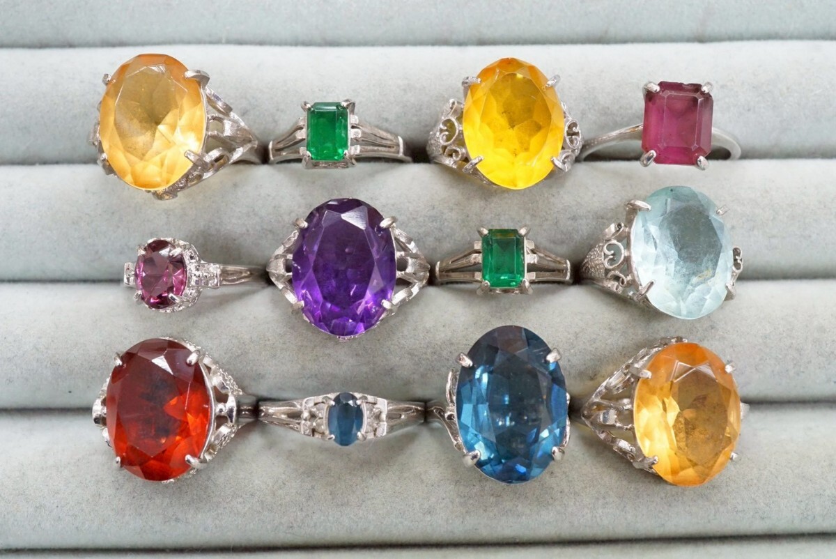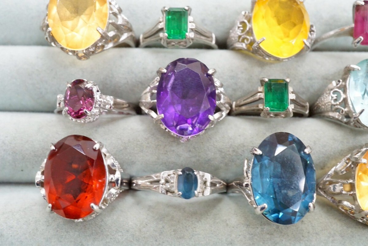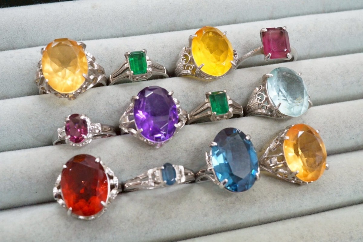 C216 昭和レトロ 色ガラス リング 指輪 ヴィンテージ アクセサリー 大量 セット まとめて おまとめ まとめ売り 装飾品
