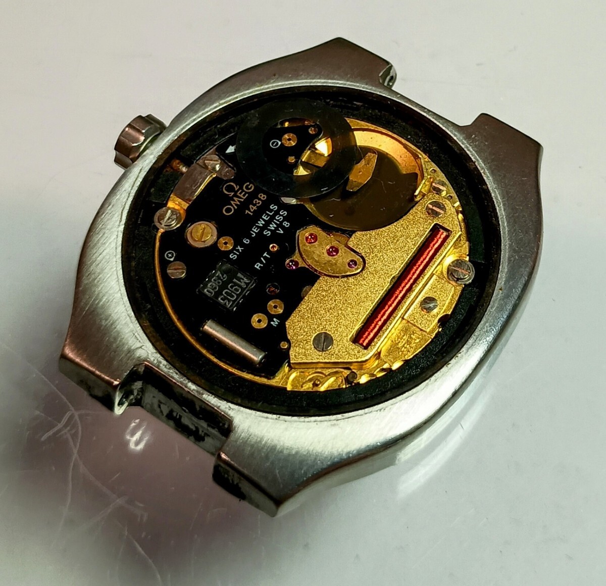ムーブメント保護のためケースに入れた状態です。