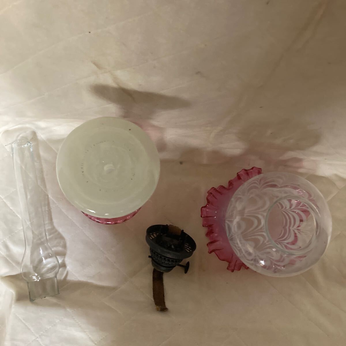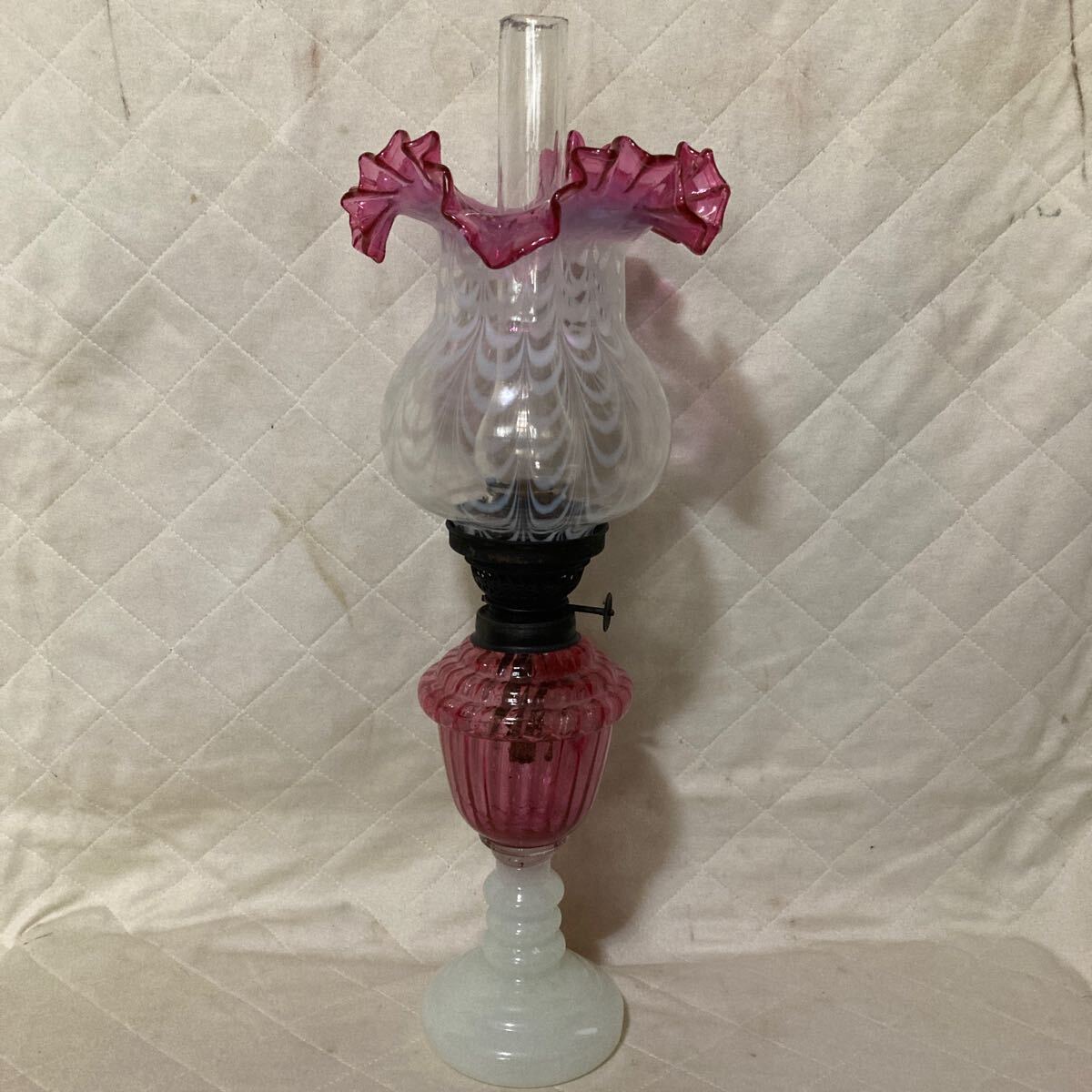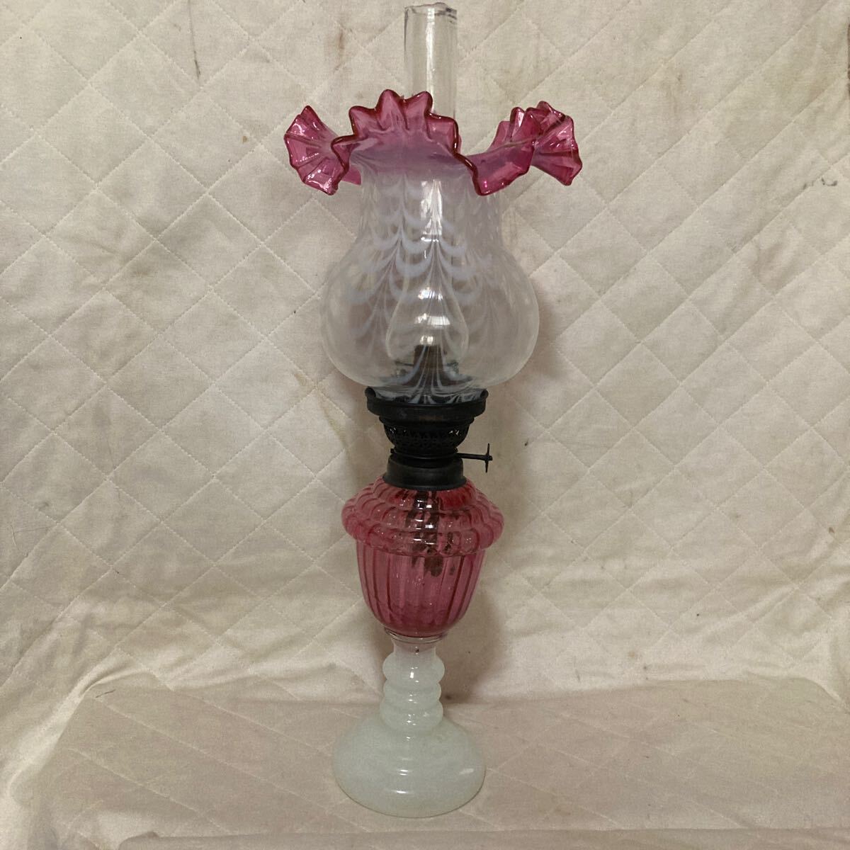 私の土佐.高知.田舎.近所.古い友人.コレクターさん.古い旧家屋敷の蔵に有った明治中期から大正時代のレトロなオイル.アルコールランプです.材質は銅.全て硝子です.色は乳白色模様.桃色.稼働品.当時物.入手困難.全て完品です。全ての重さ約1.6kg.下の台座.横幅.約10.7cm.ホヤの長さ約22.8cm.上の花柄ホヤの横幅.約16.6cm.高さ.約17.8cm.下から花柄.ホヤの上迄.高さ約43.8cm.下から中のホヤ迄の高さ約48cmです。ノンクレーム.ノンリターン.評価の低い入札者は此方でお断りする事が有ります。宜しくお願い申し上げます。