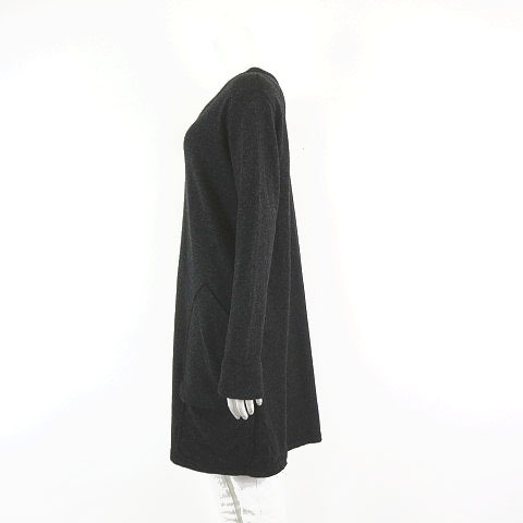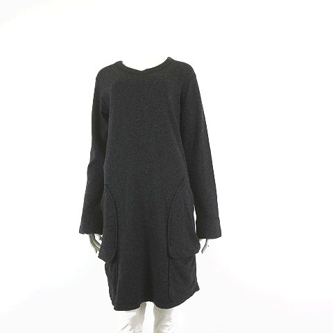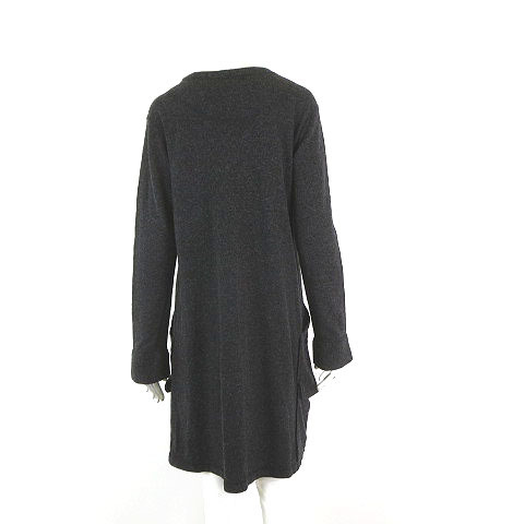 ズッカ zucca ニット ワンピース チュニック ウール 4ポケット ラウンドネック 長袖 M チャコールグレー レディース