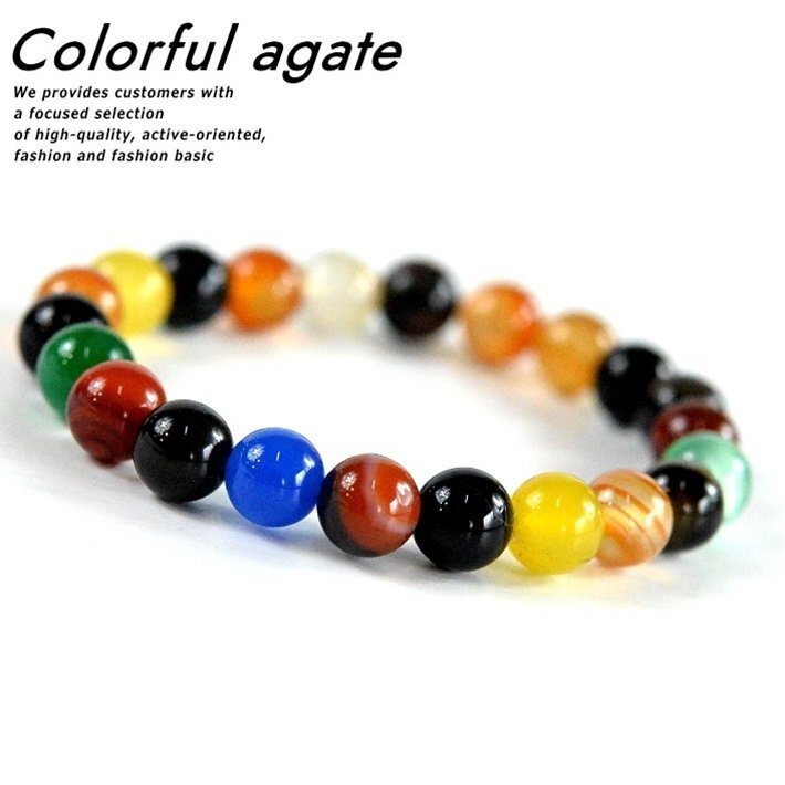 パワーストーン ブレスレット メンズ レディース 瑪瑙 カラフル アゲート 天然石 運気UP 7992500 8mm 新品 1円 スタート