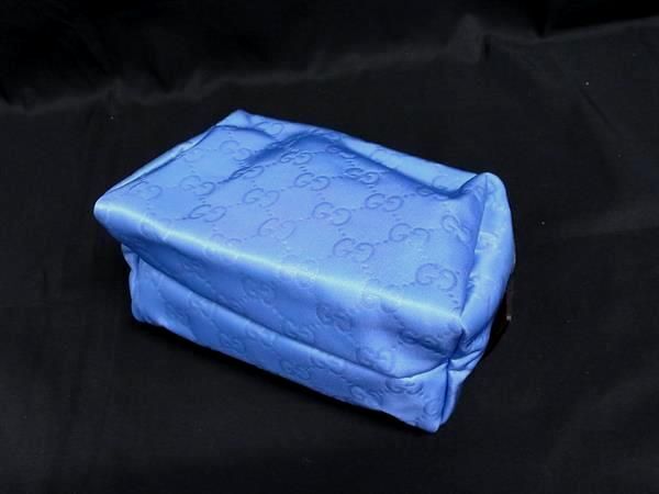 1円■美品■ GUCCI グッチ 256636 GG柄 ナイロン×レザー ポーチ メイクポーチ 小物入れ マルチケース ライトブルー系×ブラウン系 FS5358