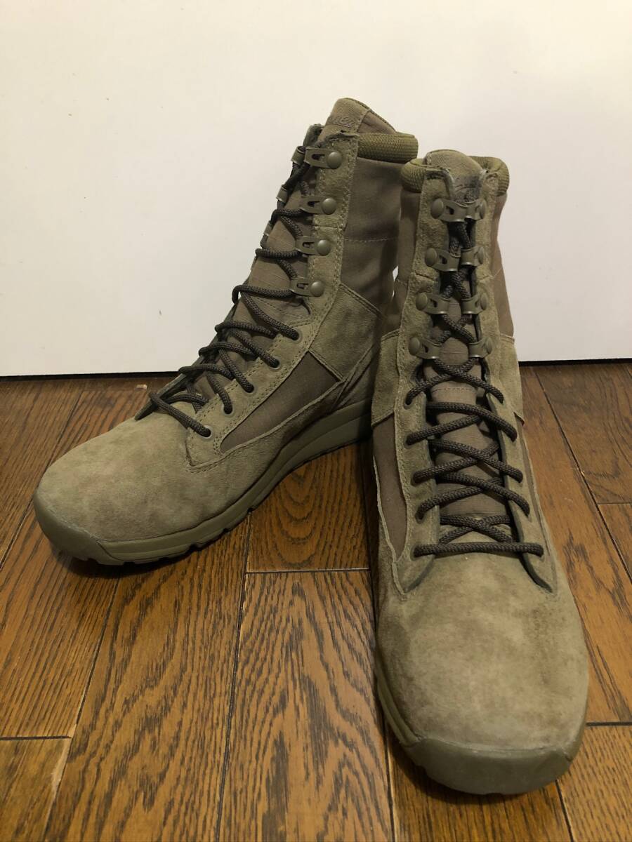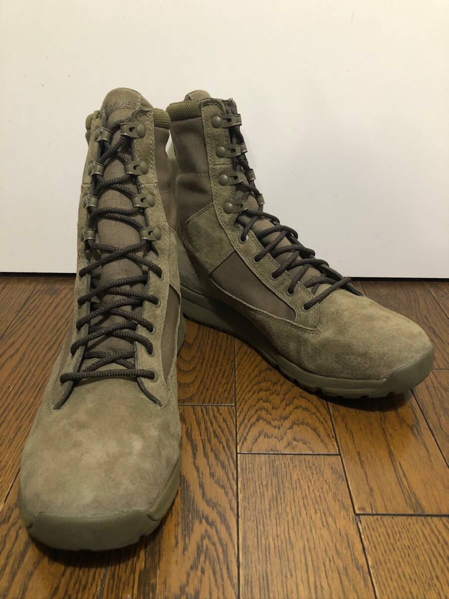 ダナーコンバットブーツ。 サイズ8D。正規店購入の本物です。 普通のダナーライトやマウンテンライトに飽きた方にもおすすめです。ソールのカラーもかっこよくよりミリタリーぽい雰囲気が出ます。通常のダナーよりも更に軽くてかなり履きやすいです。履きたかったのですが、なかなか履く機会が無いので、履いてくださる方に。保存によるスレや傷はありますが、結局こちらは何度か試し履きして、保管していました。あくまで個人の品で、汚れや小傷やスレはあるかもしれません。コレクション整理のため出品させて頂きます 。1度人の手に渡っています。多少の汚れや傷がある場合があります。基本ショップリサイクル紙袋で包装致します。大変申し訳ないのですが状態に関しては個人差があります。個人差にご理解のない方、 臭いなど気になる方、包装の丁寧さや拘りのある方、インソールの傷など気になる方、ソールの浮きなど気になる方、細かい事が気になる方、神経質な方また、取引を急がせる方、見落とした傷汚れなどに敏感な方はご遠慮ください。評価の悪い方はこちらで入札を取り消す場合がございます。24時間以内にお返事が頂ける方、3日以内に迅速にお振込が出来る方ご入札お願い致します。あくまでも自宅保管です。以上ご理解の上ご入札お願い致します。ノークレーム、ノーリターンでお願いいたします。