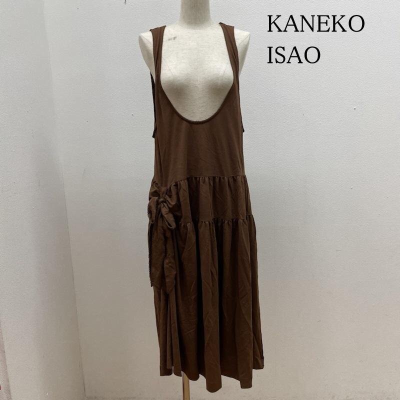 カネコイサオ ノースリーブ ワンピース 無地 リボン カシュクール ロング丈 表記無し