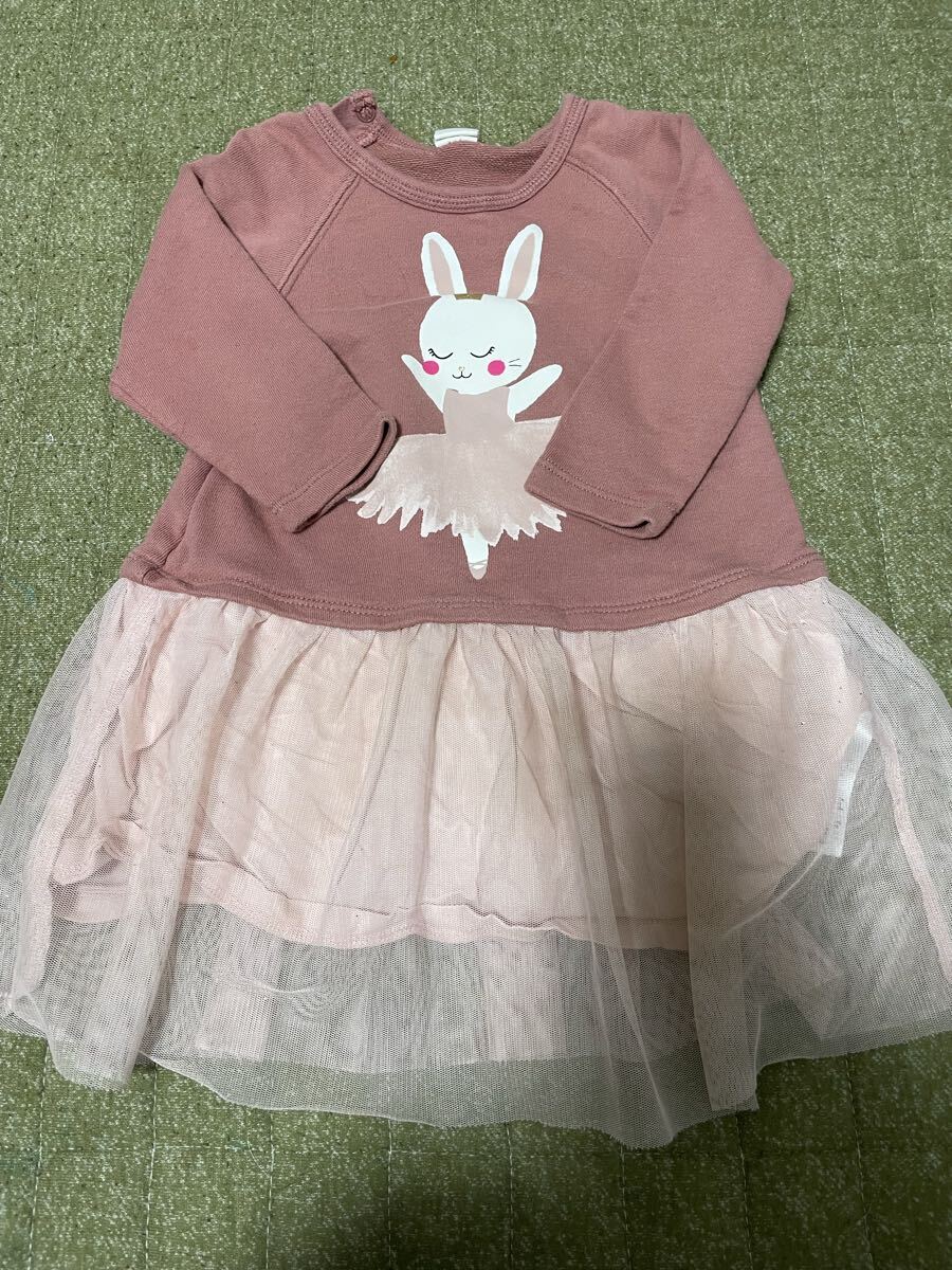 うさぎのバレリーナがデザインされた可愛らしいチュールワンピースです。