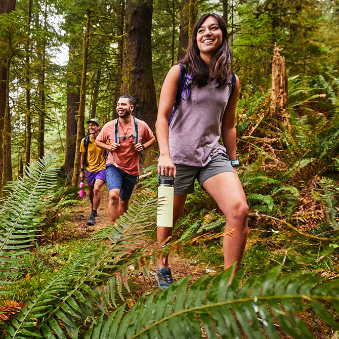 HydroFlaskは太陽の光が降り注ぐ暑いビーチで氷のように冷たい水を、スキー場のリフトの上では熱いコーヒーをご提供します。キャンプでたき火の薪を集めているとき、キャンピングチェアのそばであなたの帰りを待っています。あるいは、ハイキングの間中、ずっとあなたののどを潤し続けます。「氷よし、水よし、さぁ行こう」