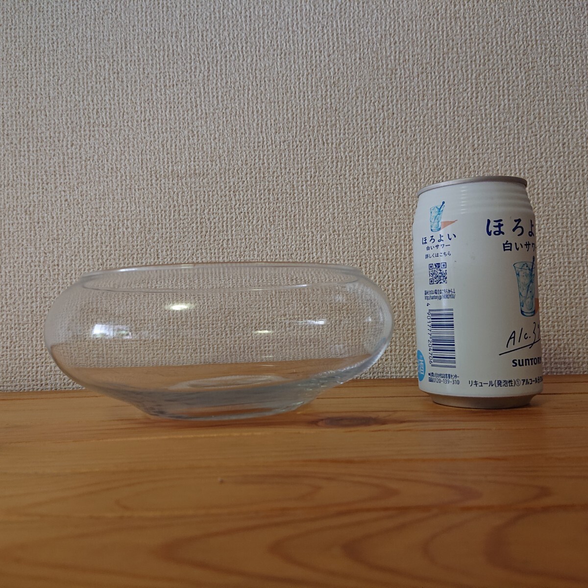 サイズは高さ約8cm、幅約20cm、口径約16cmです。