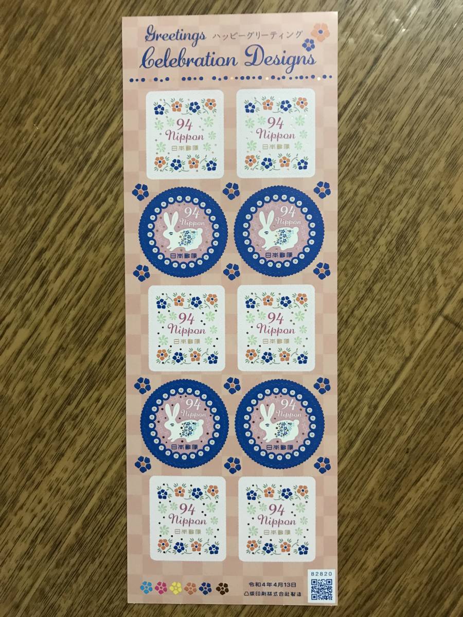 【即決販売(R4,4.13発行版)】 Greetings Celebration Designs・ハッピーグリーティング シール切手シート (94円×10枚)