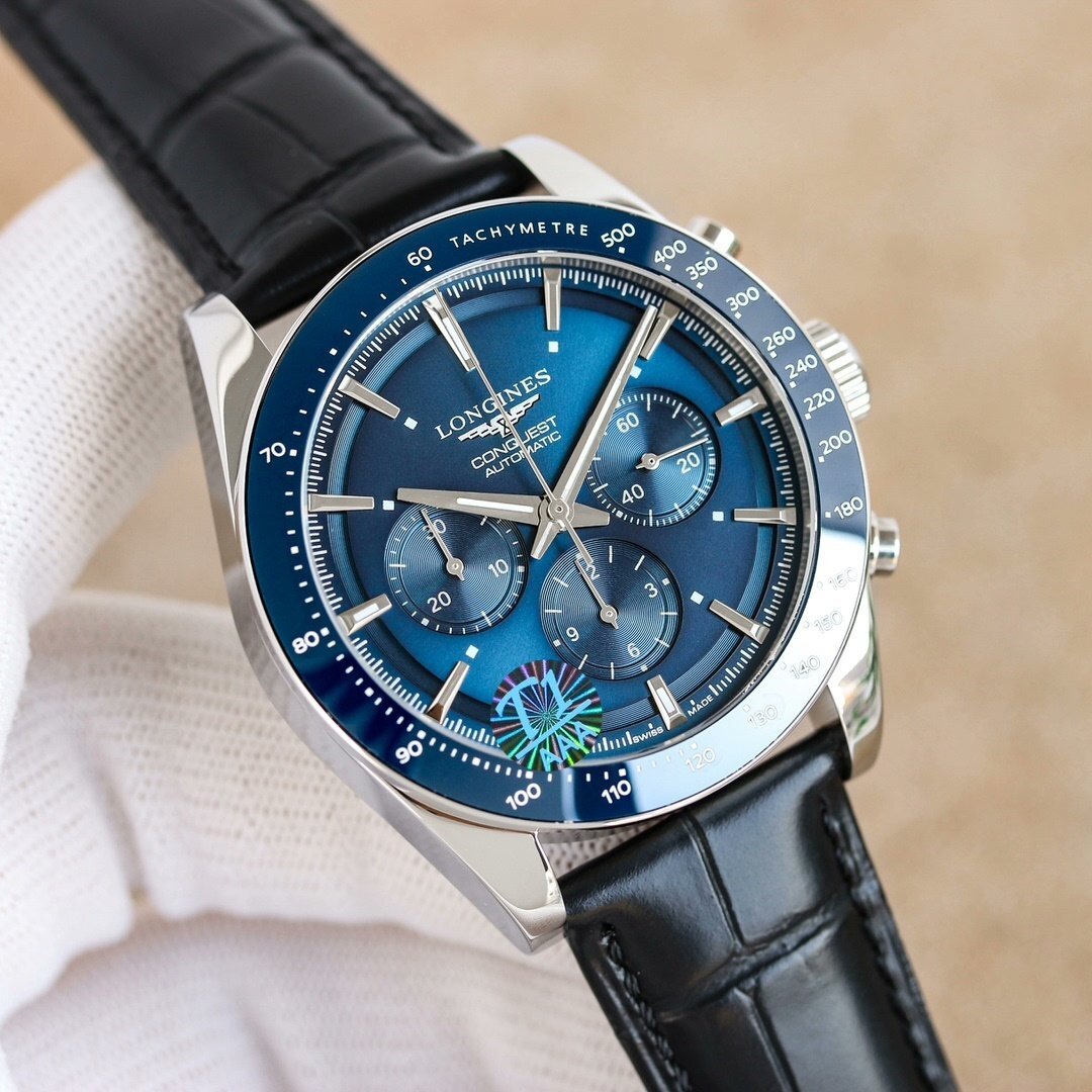 LONGINES ロンジン Conquest Chronograph 腕時計 ウォッチ メンズ レザー 自動巻き ステンレス 紳士 ブルー系 L3.835.4.92.6