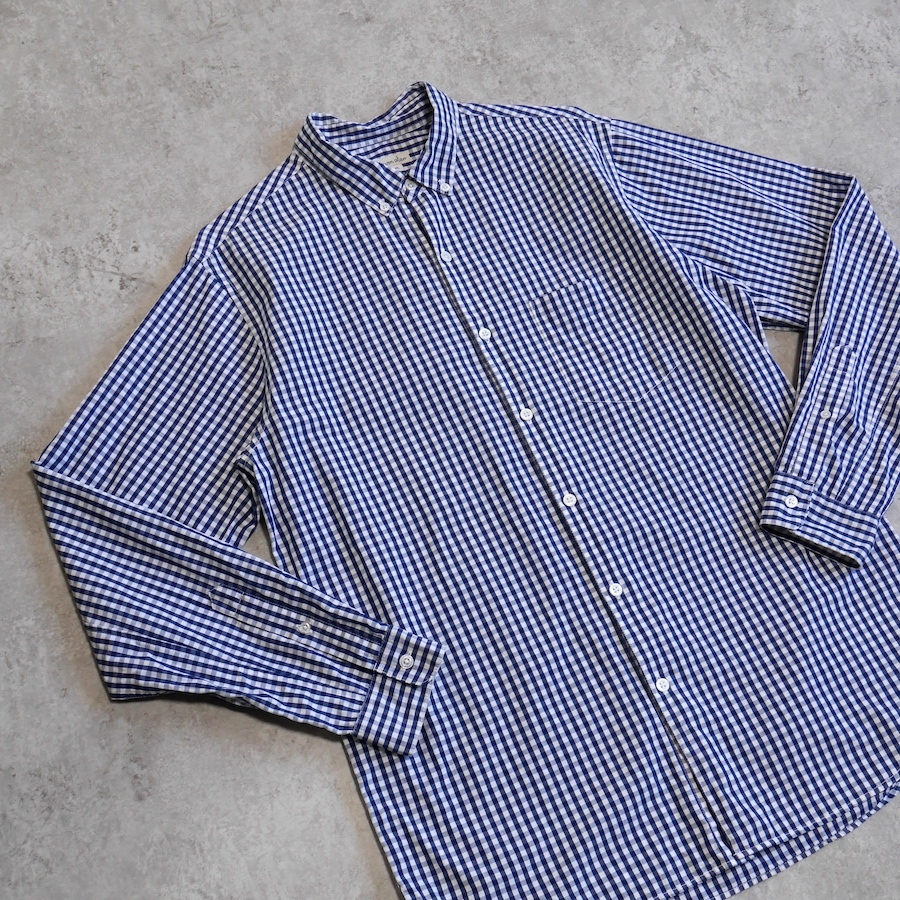 上品かつ爽やかなギンガムチェックを描き出したボタンダウンシャツ。 すっきりとしたショートカラーで主張しすぎずスマートにデザインしました。左胸にはシンプルなポケットをレイアウト。 デニムやチノパンツとの相性もよく、着回し力抜群のトップスです。