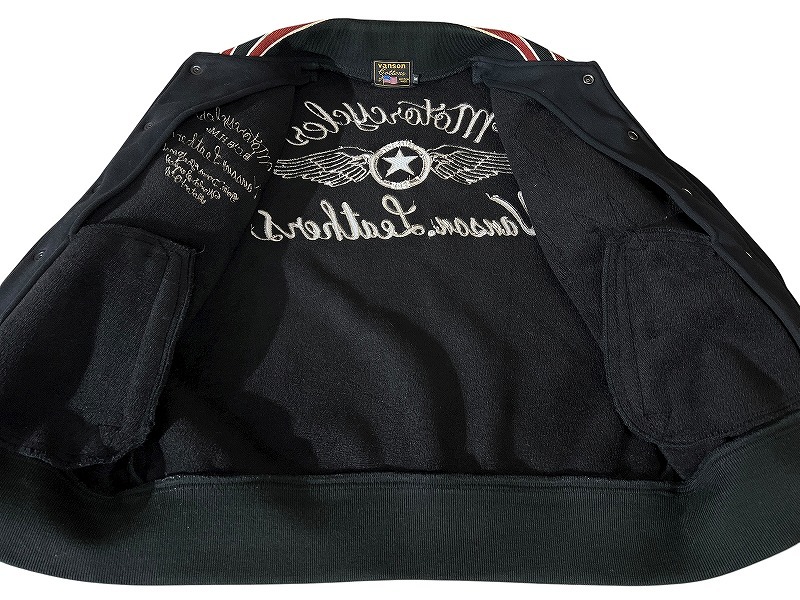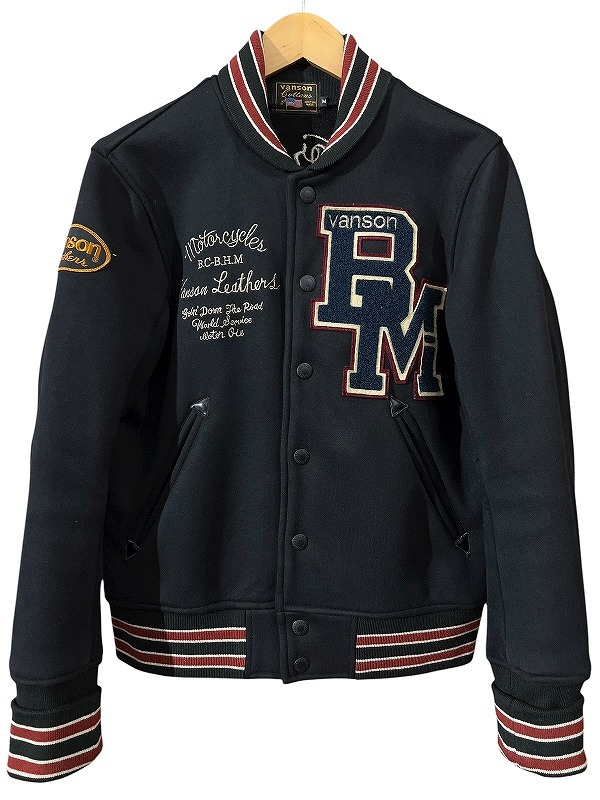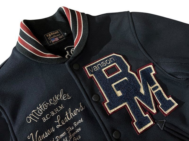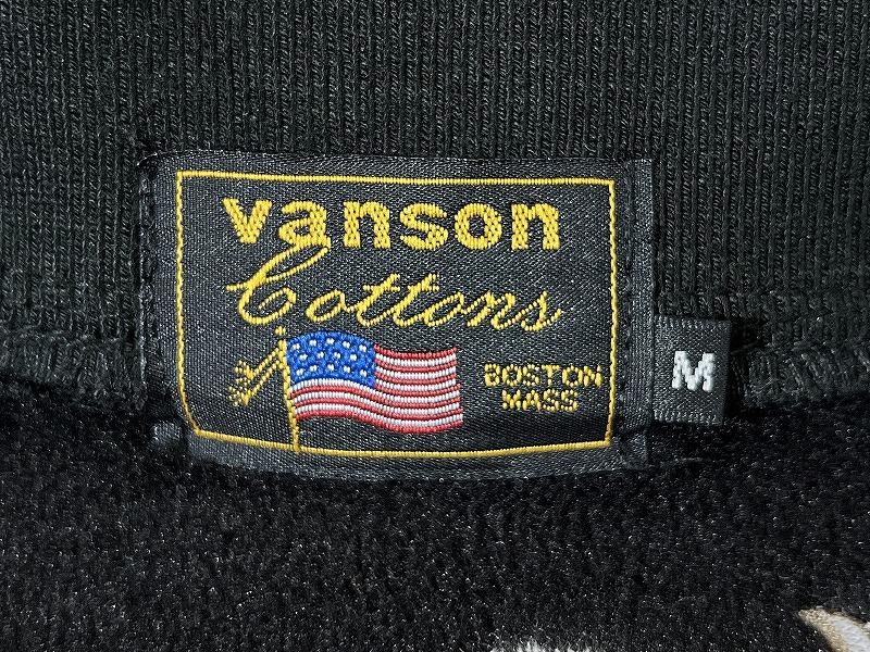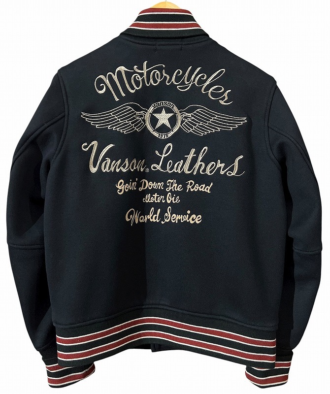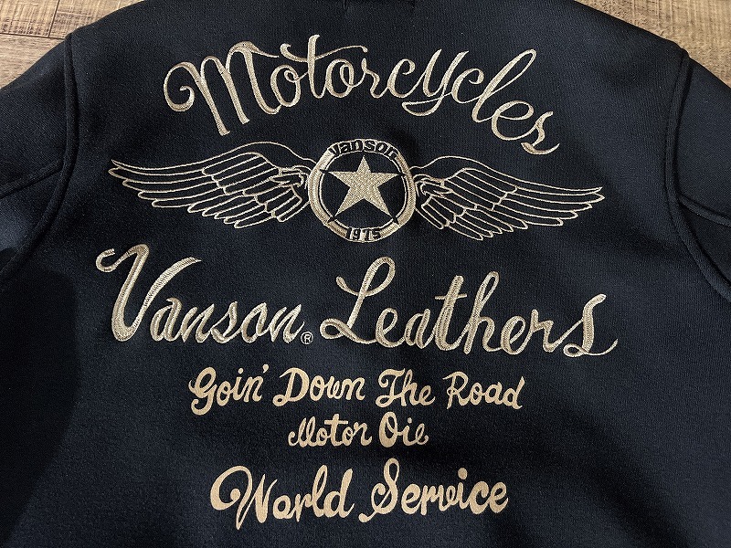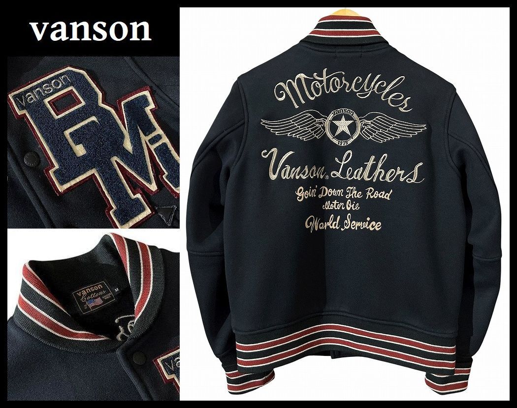 送無 VANSON LEATHERS バンソン MOTORCYCLES モーターサイクル フライング ホイール ロゴ ワッペン 刺繍 フルデコ スウェット スタジャン M