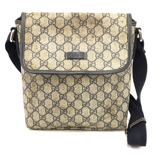 | グッチ GG ショルダーバッグ 斜め掛け レディース グレー×ネイビー系 イタリア製 ブランド小物 GUCCI QH102-50 |