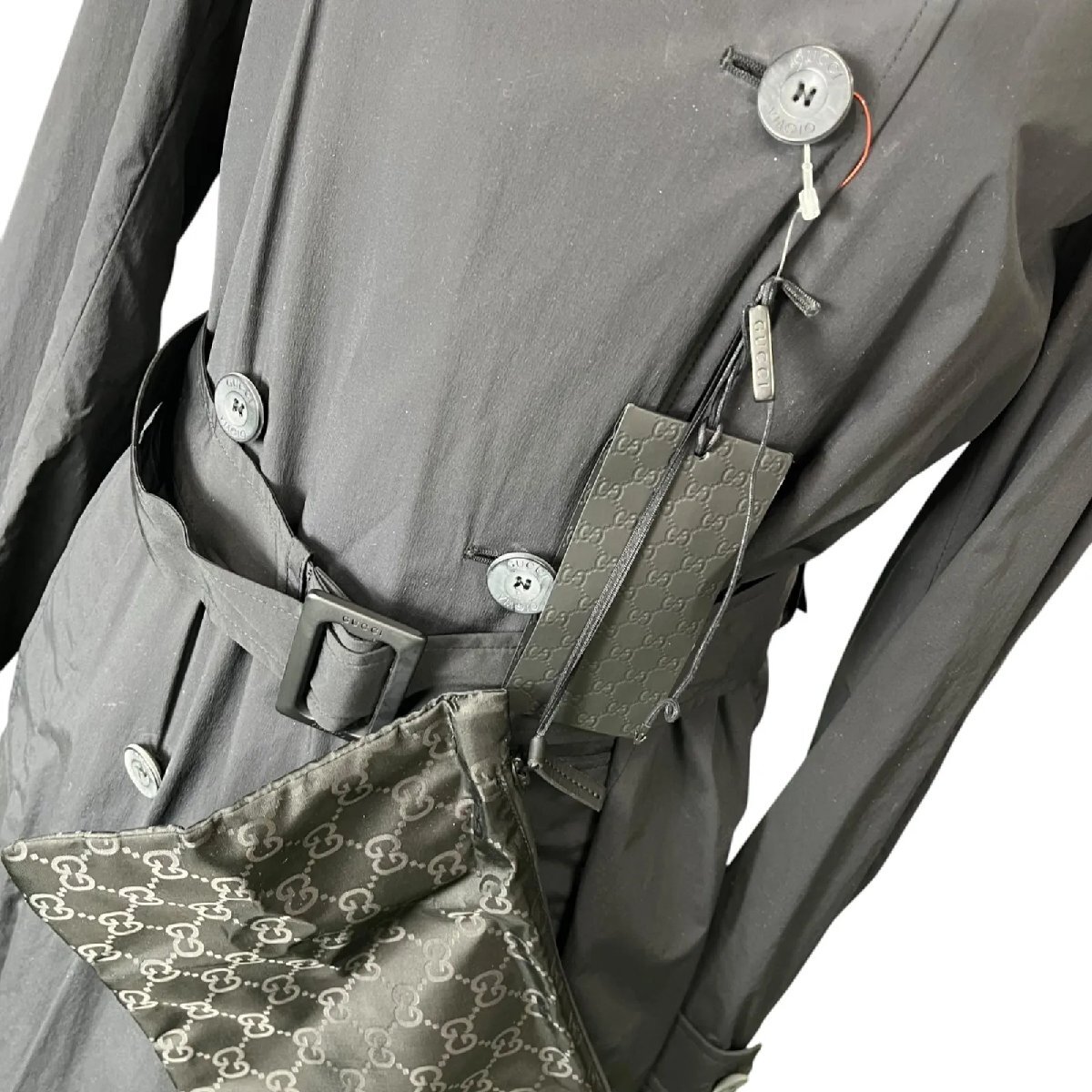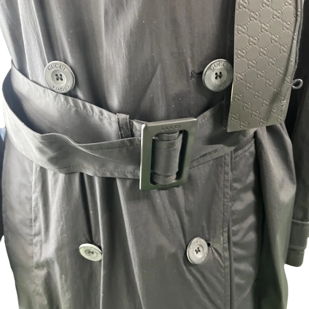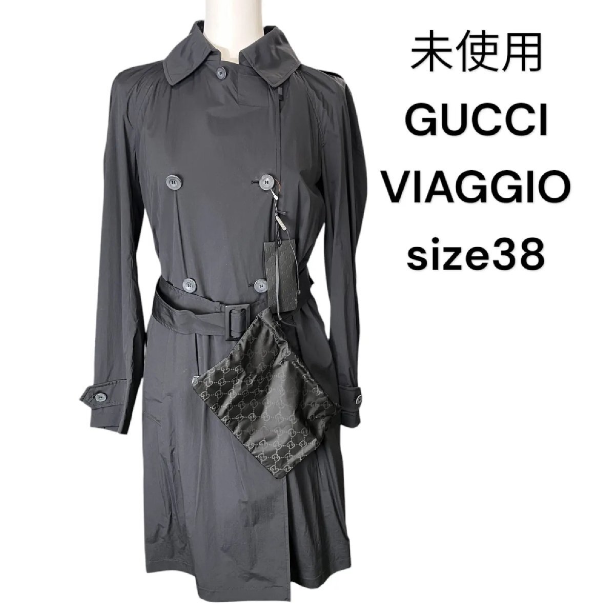 未使用 GUCCI グッチ VIAGGIO ライト トレンチ スプリング コート トラベルにも 黒、ブラック 38、S、7号 S5N577