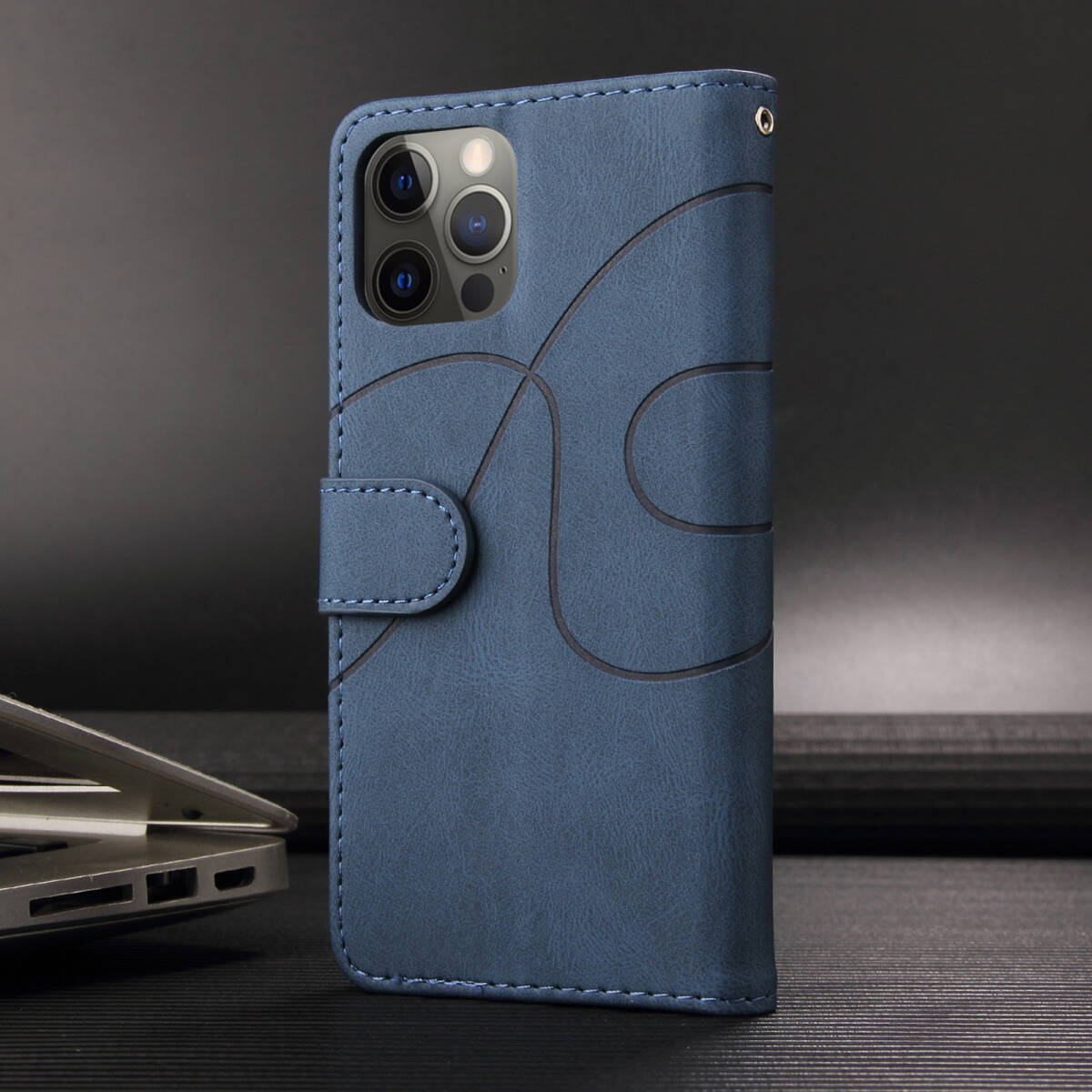 iPhone 16e (SE4) ケース スマホ 手帳型 カードケース ツートンカラー 曲線模様 幾何学 ネイビー 紺色 紺 裏止め アイフォン
