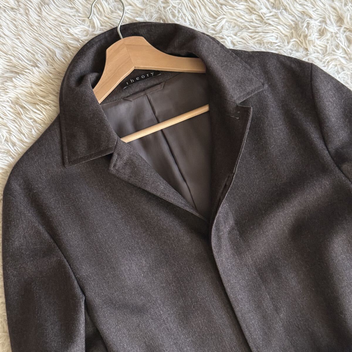 紳士服高級ブランドセオリーのベルト付きのスタイリッシュなステンカラーコートです。
