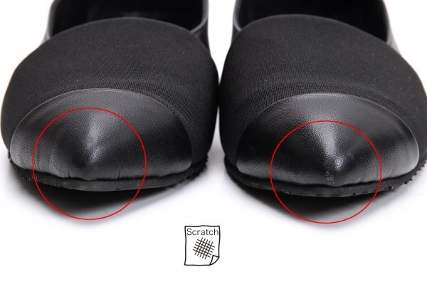 実寸 | インソール: 24.5cm アウトソール: 25.5cm 最大幅: 8cm ヒール高: 2cm ヒール合わせた全高: 8.5cm 履き口外周: 40cm |