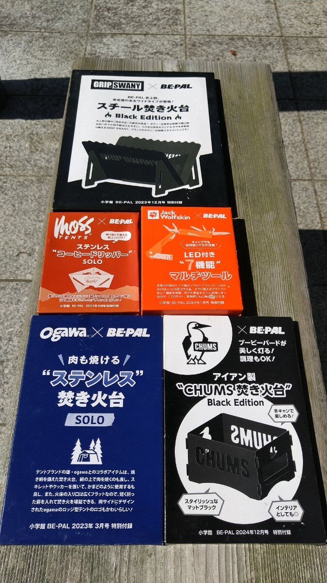 BE-PAL ビーパル 特別付録 5品 新品未開封の 出品です。焚き火台 3種と LED付きマルチツールとステンレス コーヒー ドリッパー に細やかなオマケ3点お付けします。レターパックプラス600円