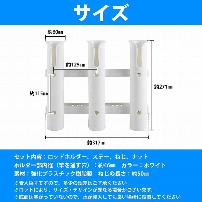 [3連] ロッド ホルダー 竿 立て 置き 入れ 釣り フィッシング スタンド ネジ付き 固定 船 漁船 ボート ヨット 白 ホワイト