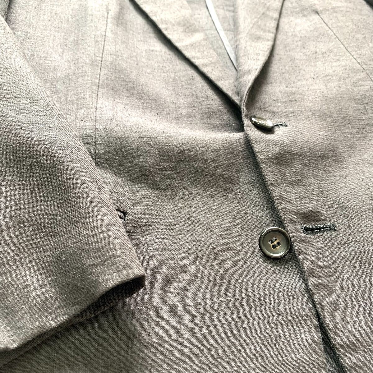 こちらはまさにその頃のコムデギャルソンの麻スーツです。松田優作が着ていたのがコムデギャルソンだったのかメンズビギだったか、それは定かではないけどもおそらくその辺りでしょう。麻のスーツって、大人の色気を強烈に感じさせるんだなぁ、と心に焼き付けられた、その頃のヴィンテージスーツです。