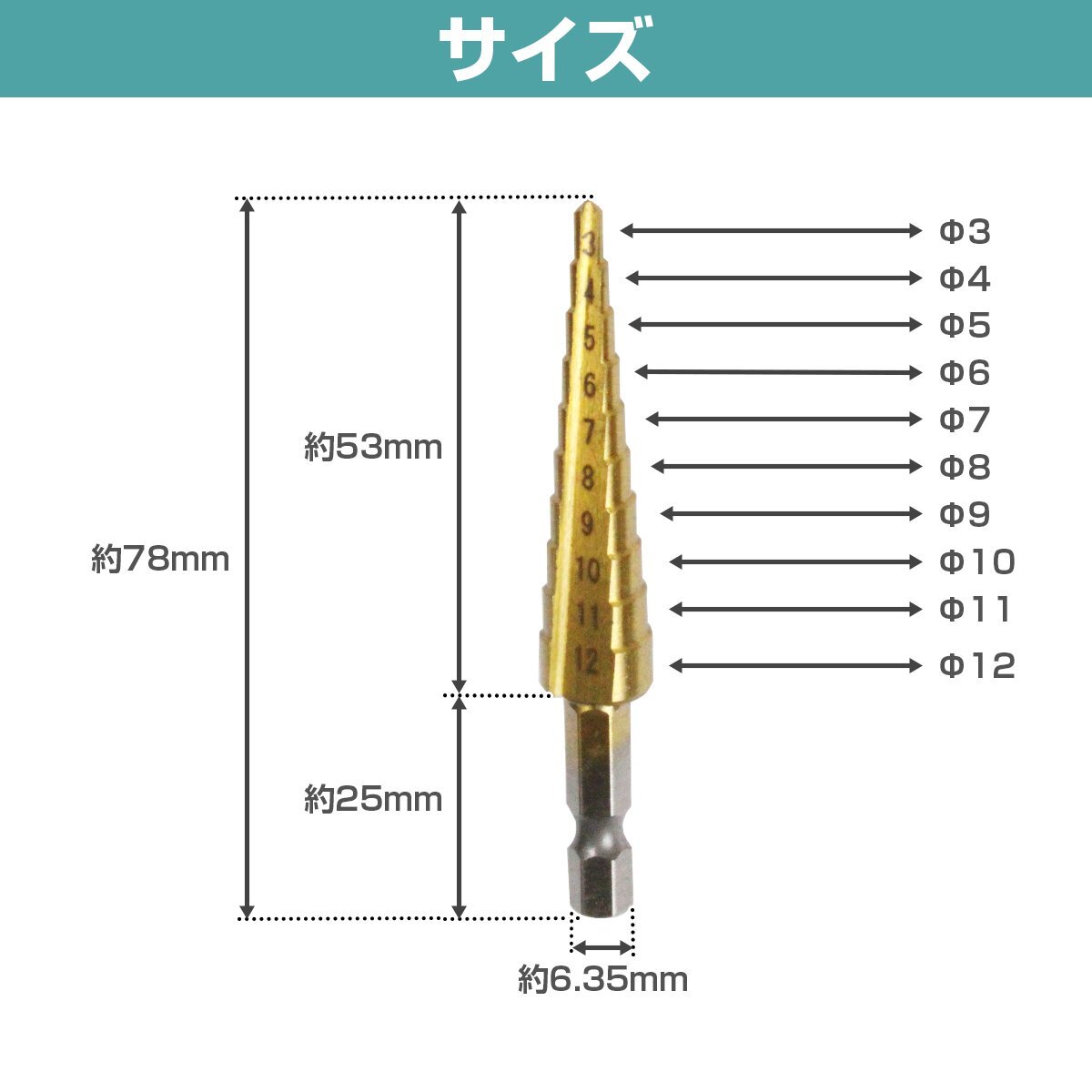 4本セット φ 3mm-12mm チタンコーティング 六角軸 タケノコ ドリル ビット 替え刃 ストレート ポンチ 穴あけ