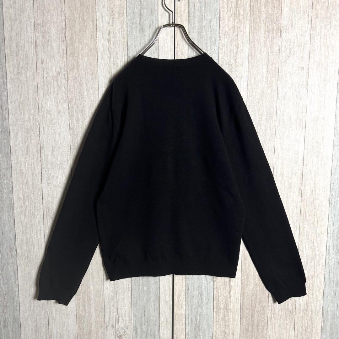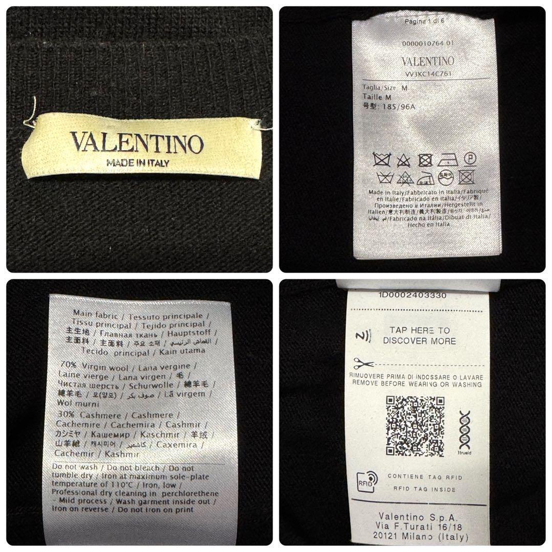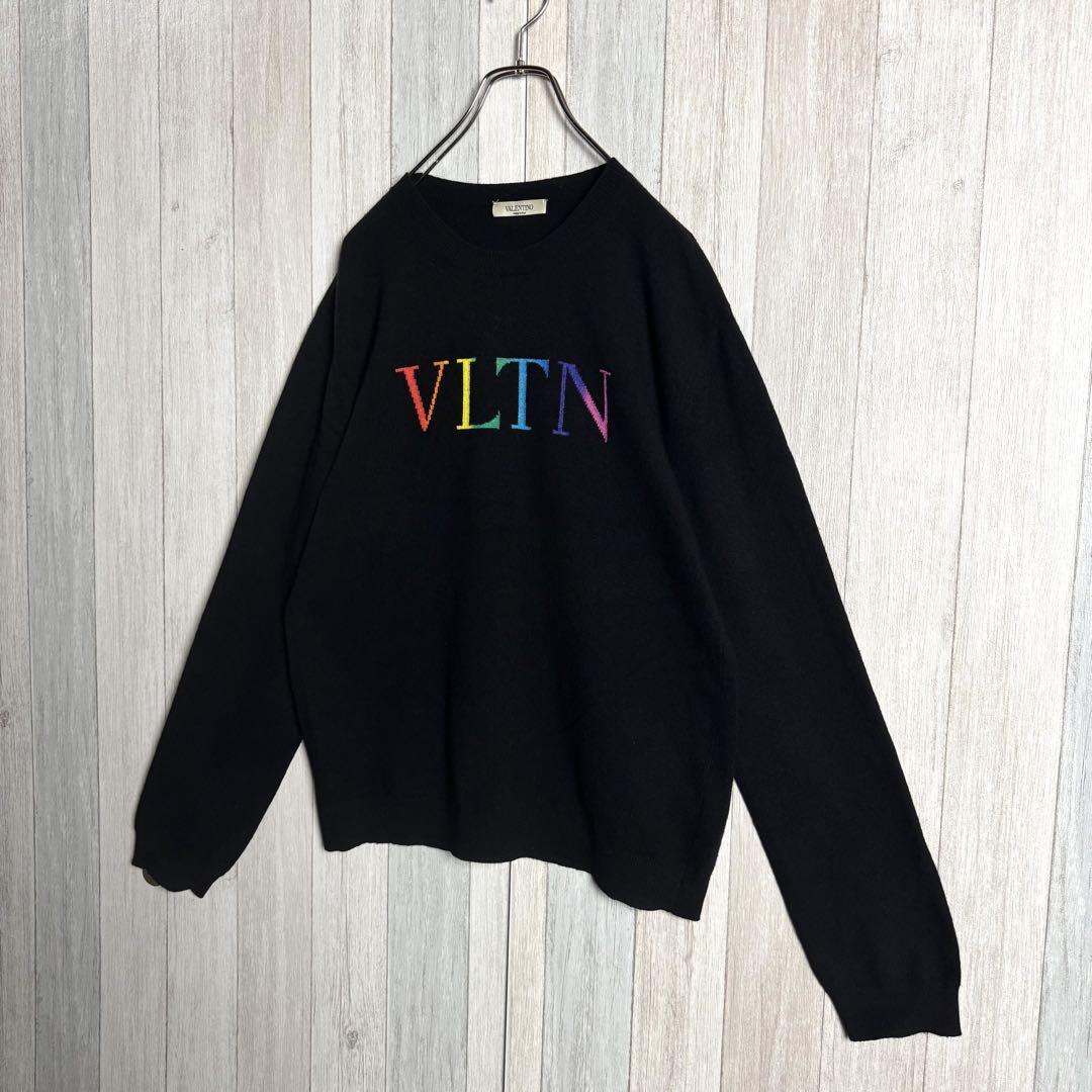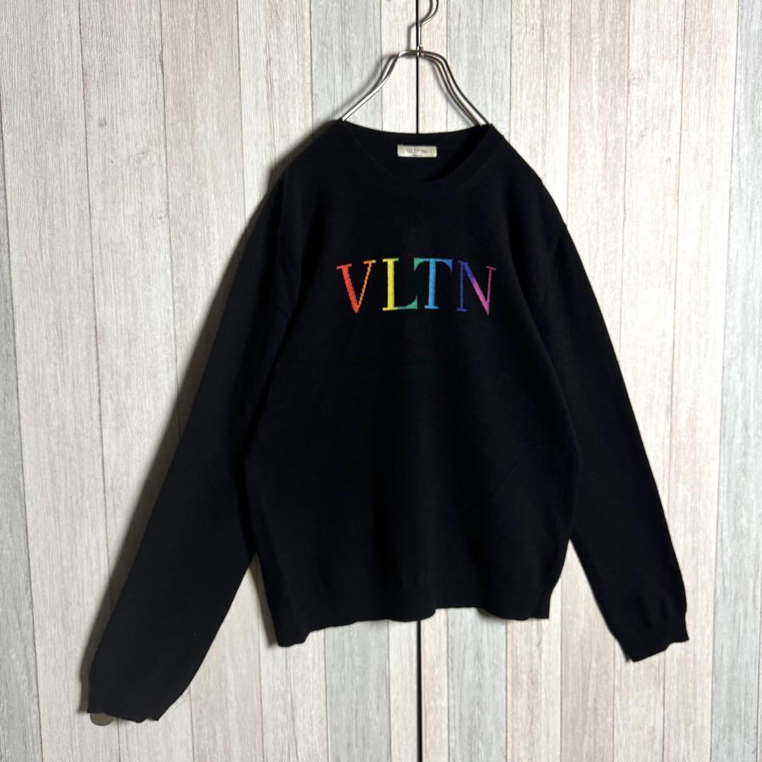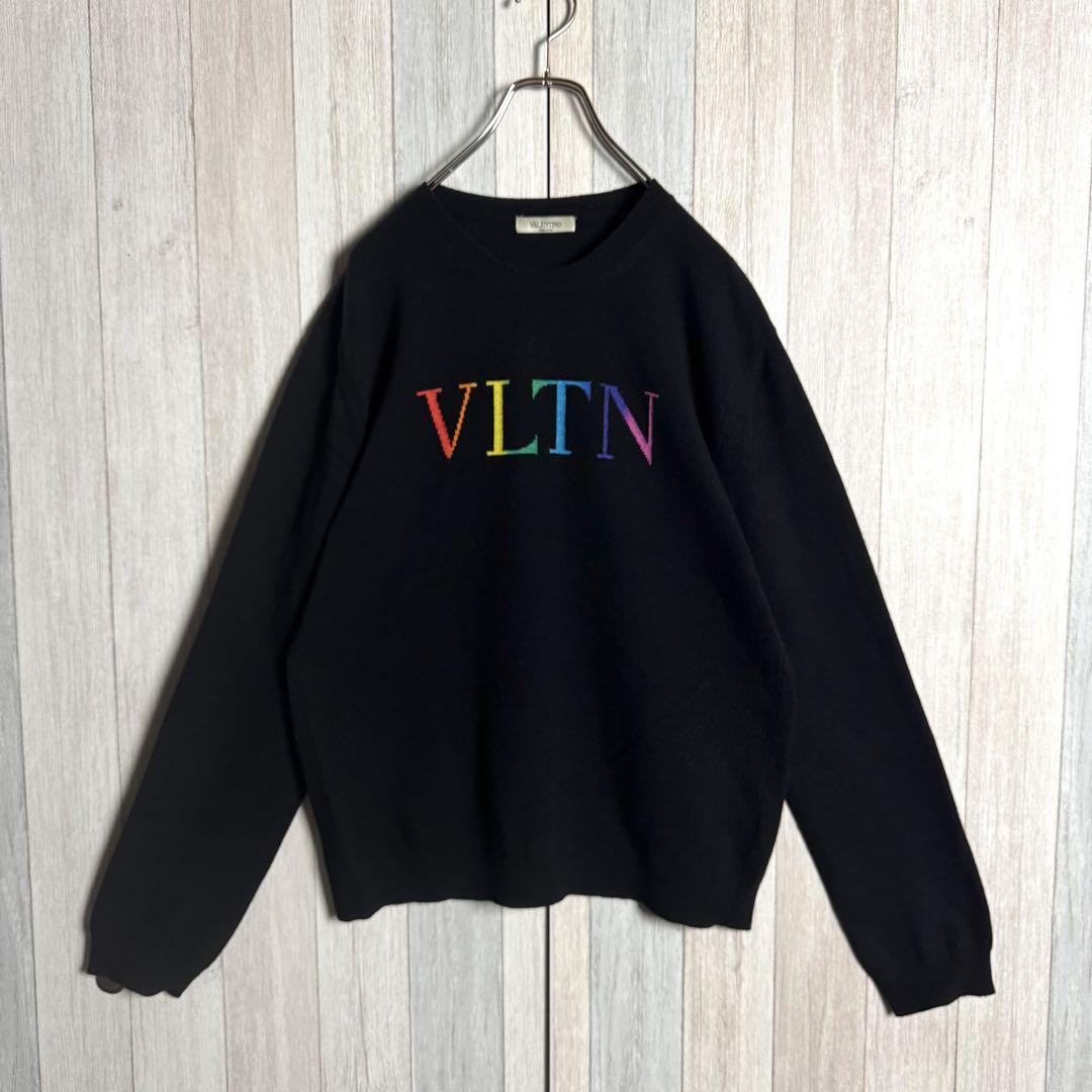 【QR確認済・希少カシミヤ混】イタリア製 VALENTINO ヴァレンティノ レインボーVLTNロゴ クルーネック ニットセーター ブラック・黒 M