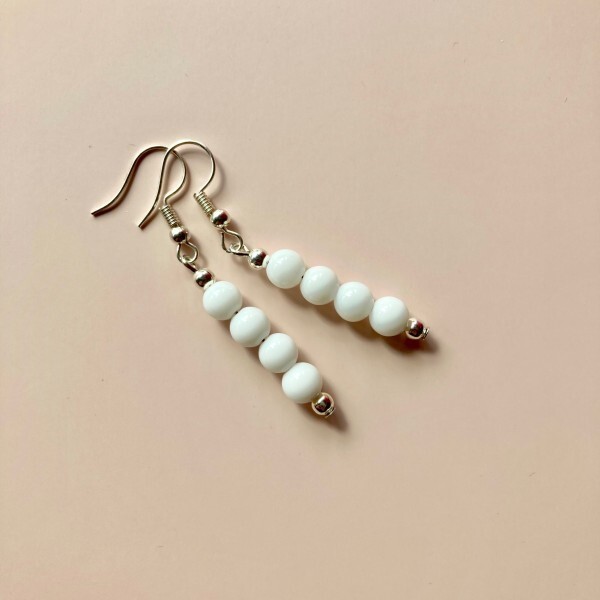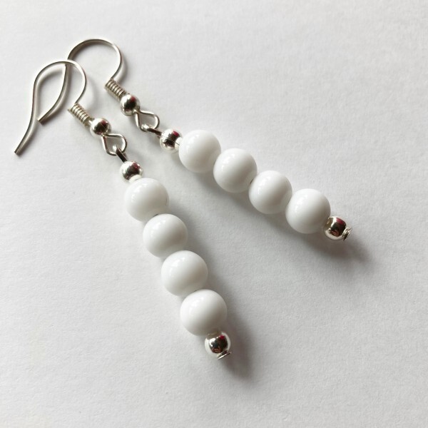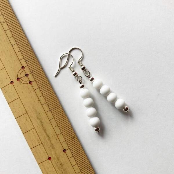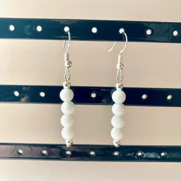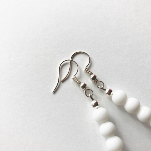 ホワイトオニキスピアス フックピアス 6mm (シルバー) イヤリング、樹脂フック変更可 樹脂ピアス シンプル ハンドメイド