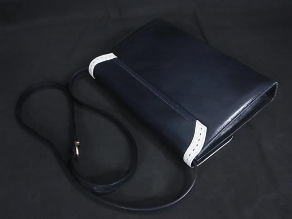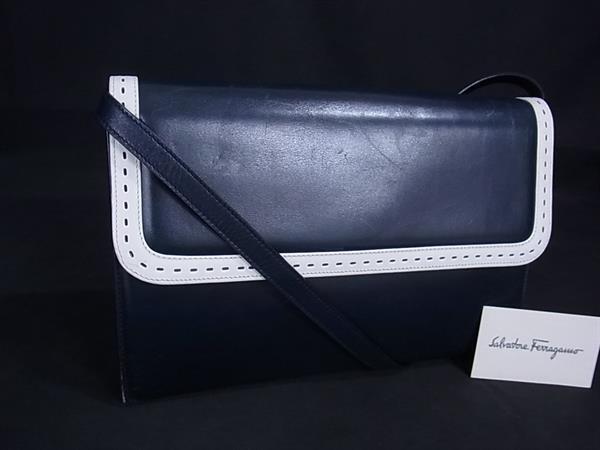 1円 Salvatore Ferragamo フェラガモ レザー クロスボディ ショルダーバッグ 斜め掛け レディース ネイビー系×ホワイト系 FV0328