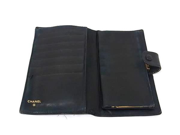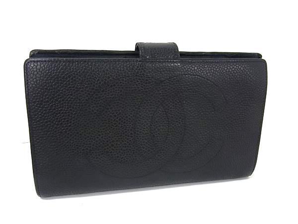 1円 CHANEL シャネル ココマーク キャビアスキン がま口 二つ折り 長財布 ウォレット 小銭入れ 札入れ レディース ブラック系 FU2452