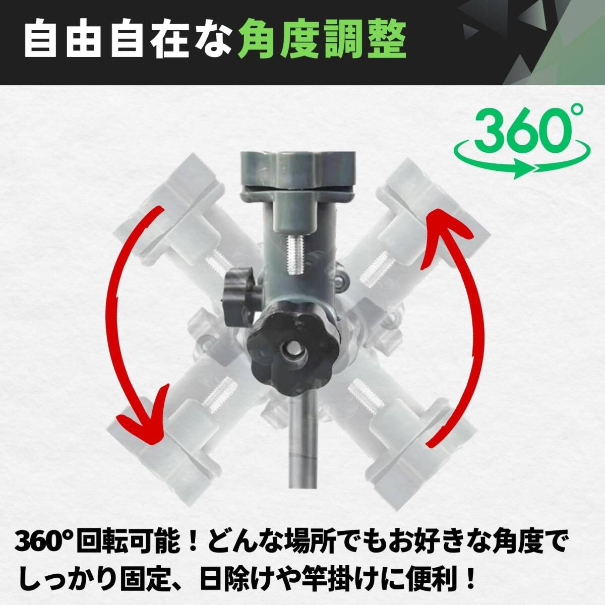 【自由な角度調整で快適】 このホルダーはジョイント部分が360°回転し、自由に角度を調整できます。お好きな角度で固定できるため、日除けや竿掛けなど、様々な用途で活躍します。