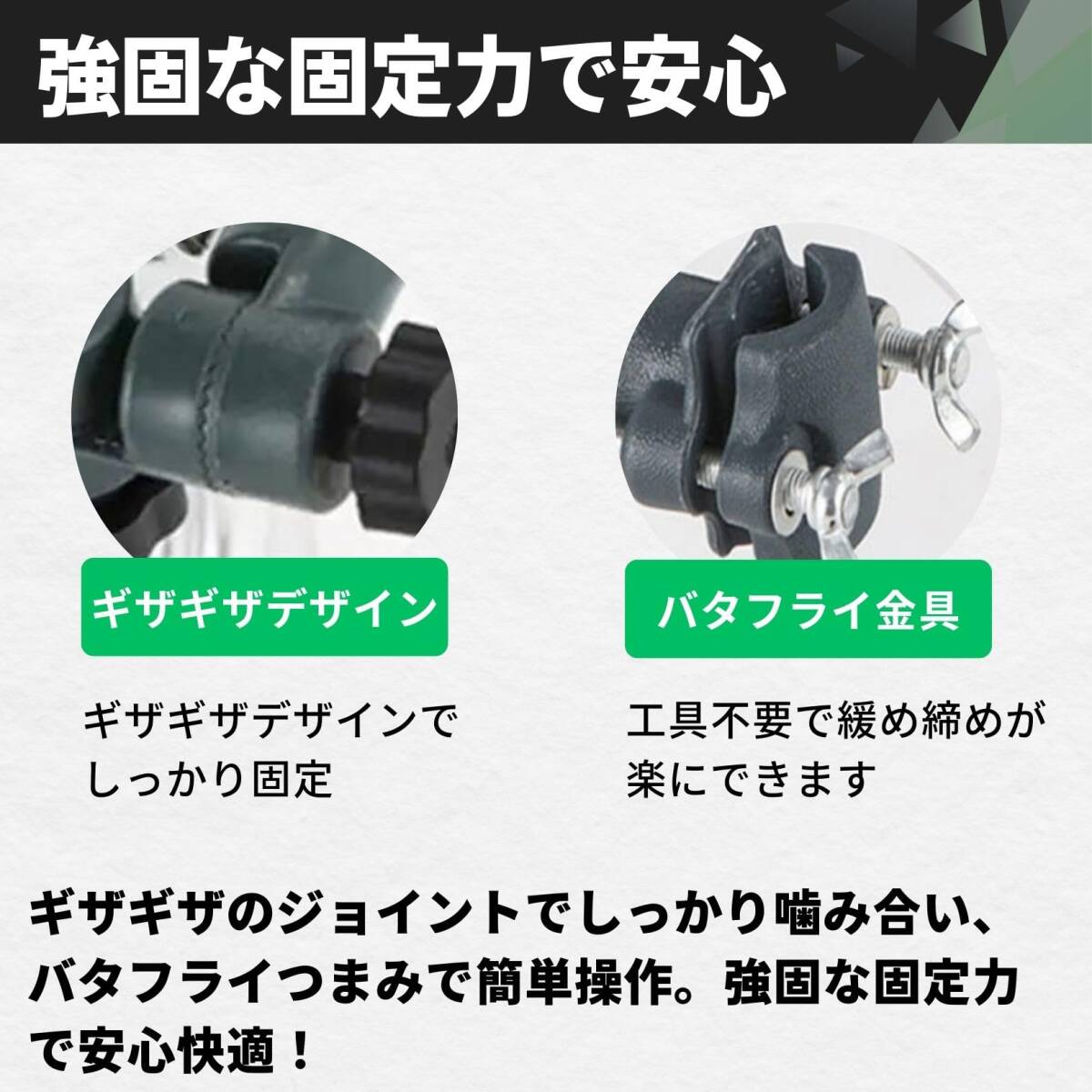 【安全な使用のための注意点】 使用前には緩みがないかを確認し、必要に応じて増し締めしてください。強風時や構造物の固定には使用せず、釣りなどのレジャーの補助具としてご利用ください。