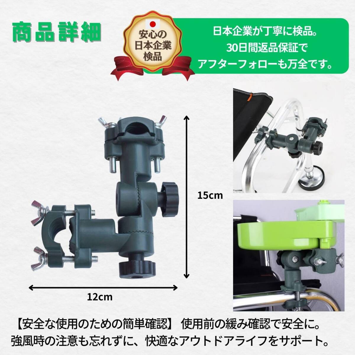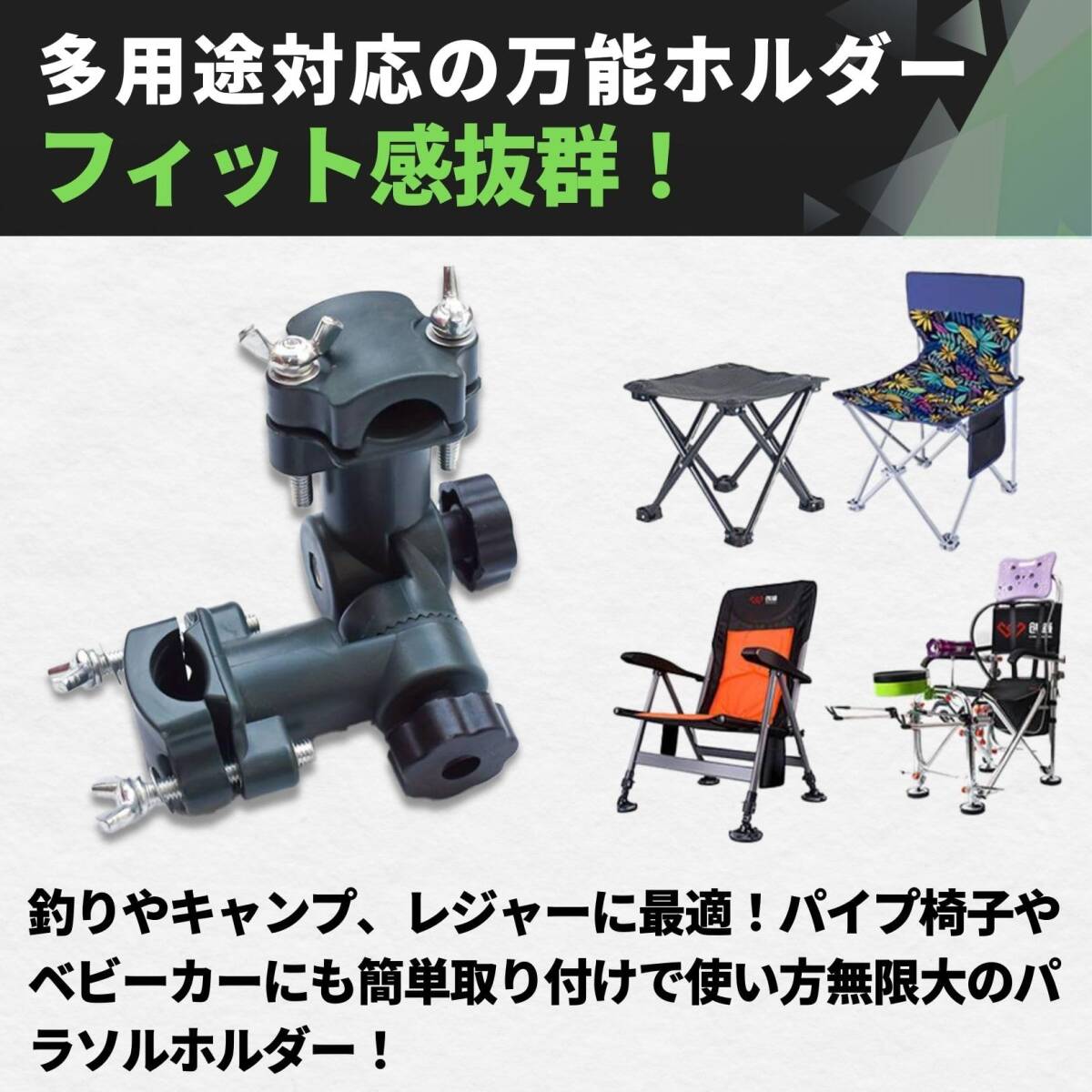 【多用途対応の高品質ホルダー】 高品質ABS製のパラソルホルダーで釣りやキャンプ、レジャーに最適なアイテムです。ヘラブナ釣り用の台やパイプ椅子、キャンプ用の椅子、ベビーカーなどに取り付けが簡単で、アウトドアで幅広く利用できます。