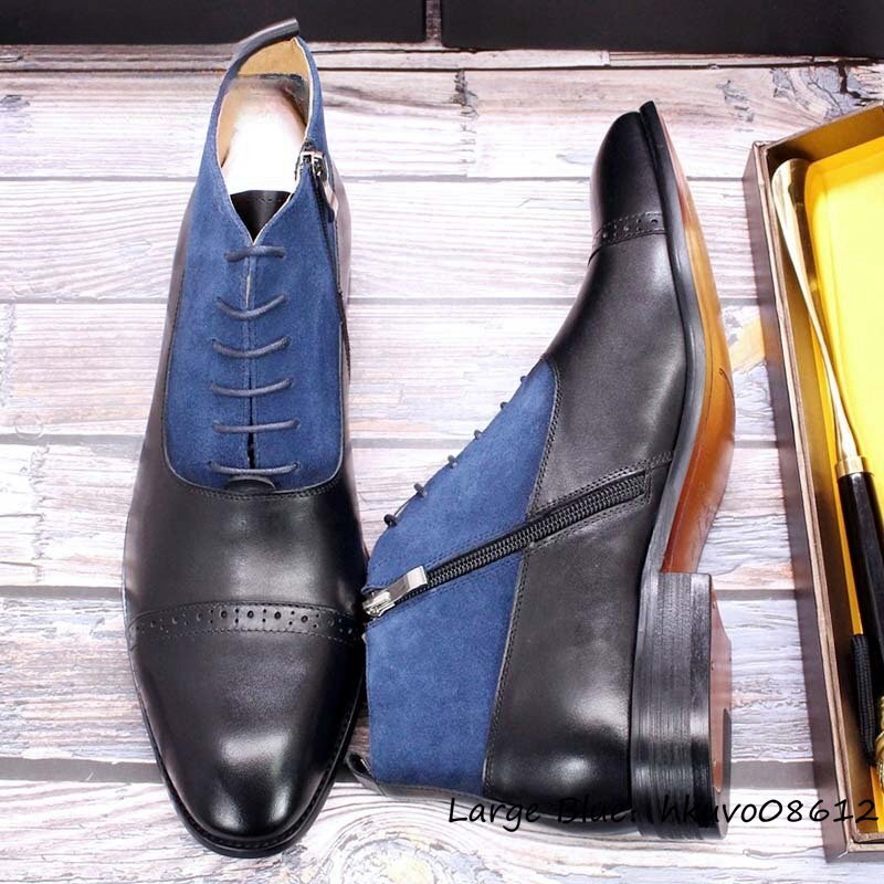 最高級★メンズ マーティンブーツ 本革 超希少 職人手作り ショートブーツ ビジネスシューズ レザーブーツ 皮靴 牛革 新品 ブラック 24.5cm