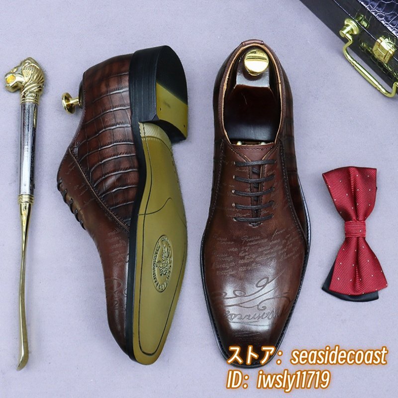 最高級■定価9万 ビジネスシューズ 新品 レザーシューズ 本革 職人手作り 超希少 ローファー 紳士靴 牛革 革靴 フォーマル 珈琲色 25.5cm
